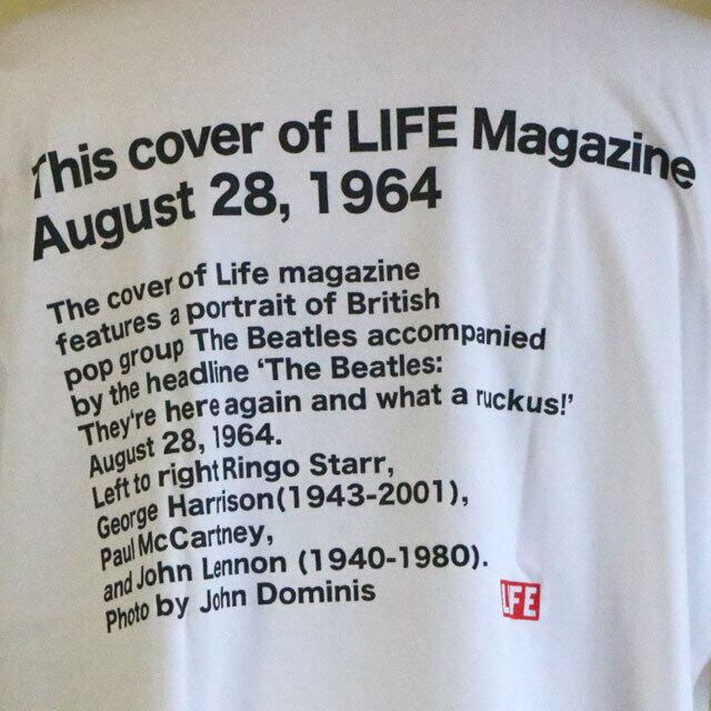 背面には「This cover of LIFE Magazine August 28,1964 The cover of Life magazine features a portrait of British pop group The Beatles accompanied by the headline 'The Beatles:They're here again and what a ruckus!' August 28,1964. Left to right Ringo Starr, George Harrison(1943-2001),Paul McCartney,and John Lennon(1940-1980).Photo by John Dominis」とプリントされています。