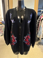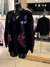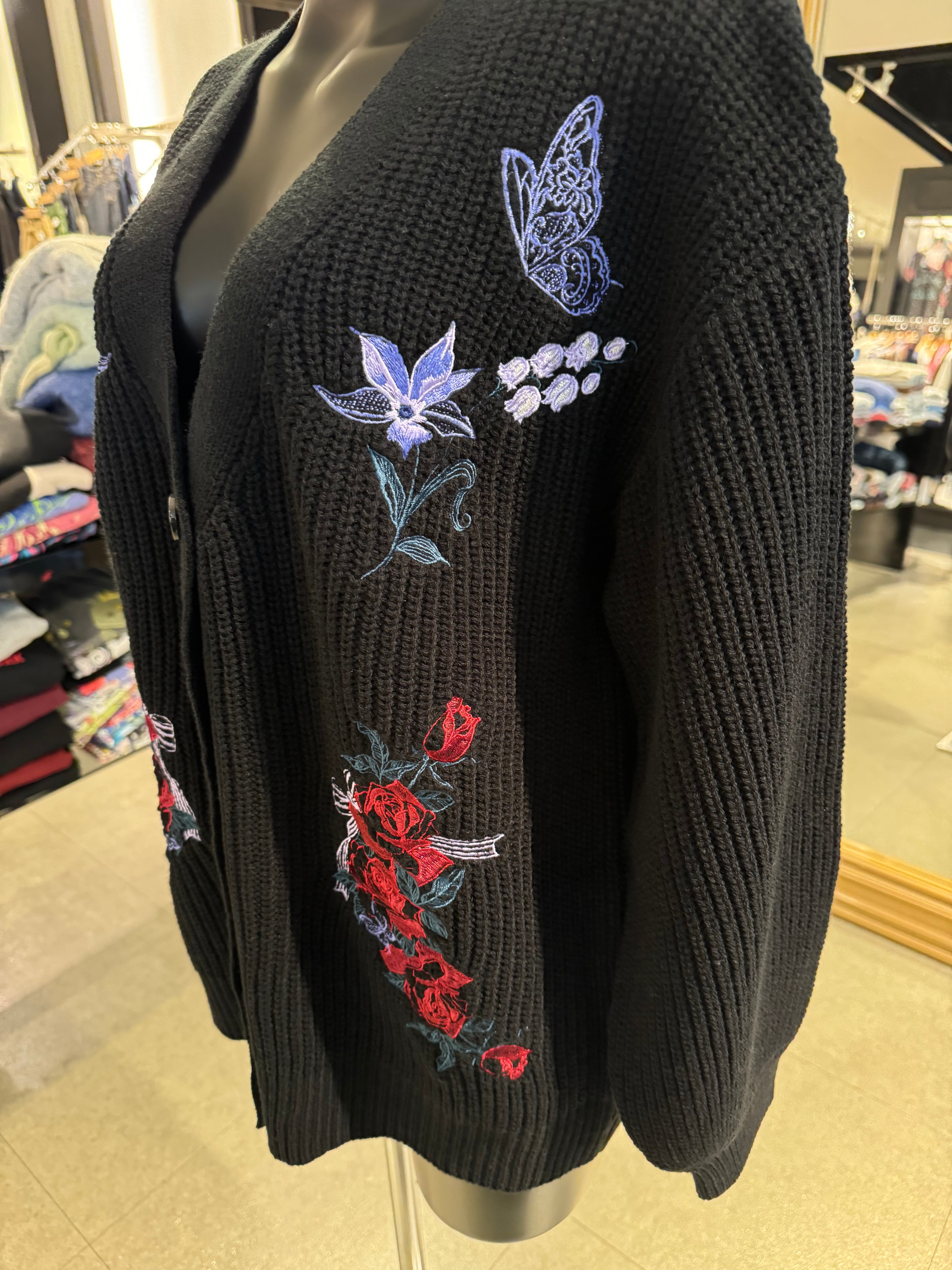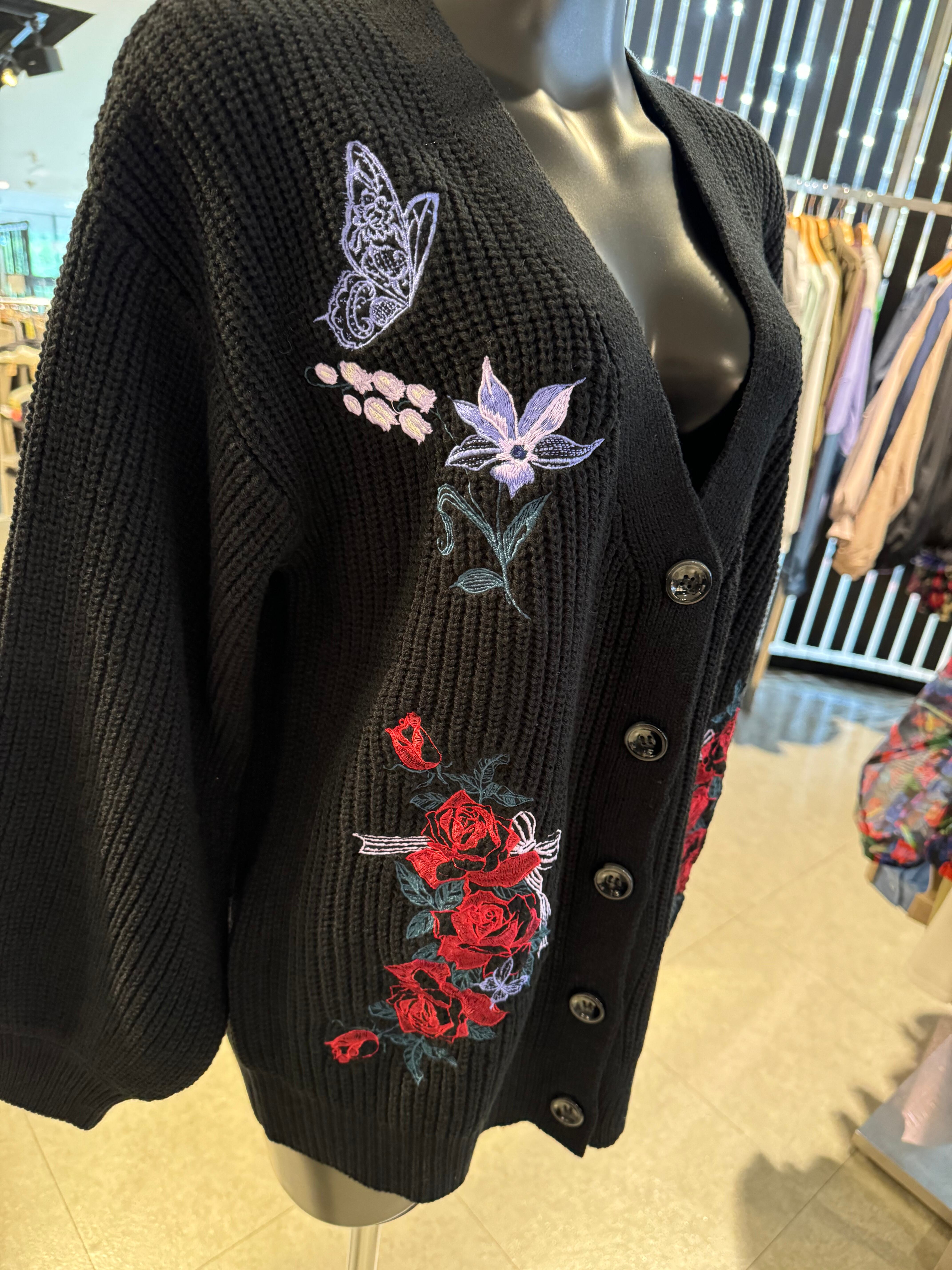 IS ScoLar(イズスカラー)の花蝶刺繍リブニットカーディガン ブラック 543257-09です。