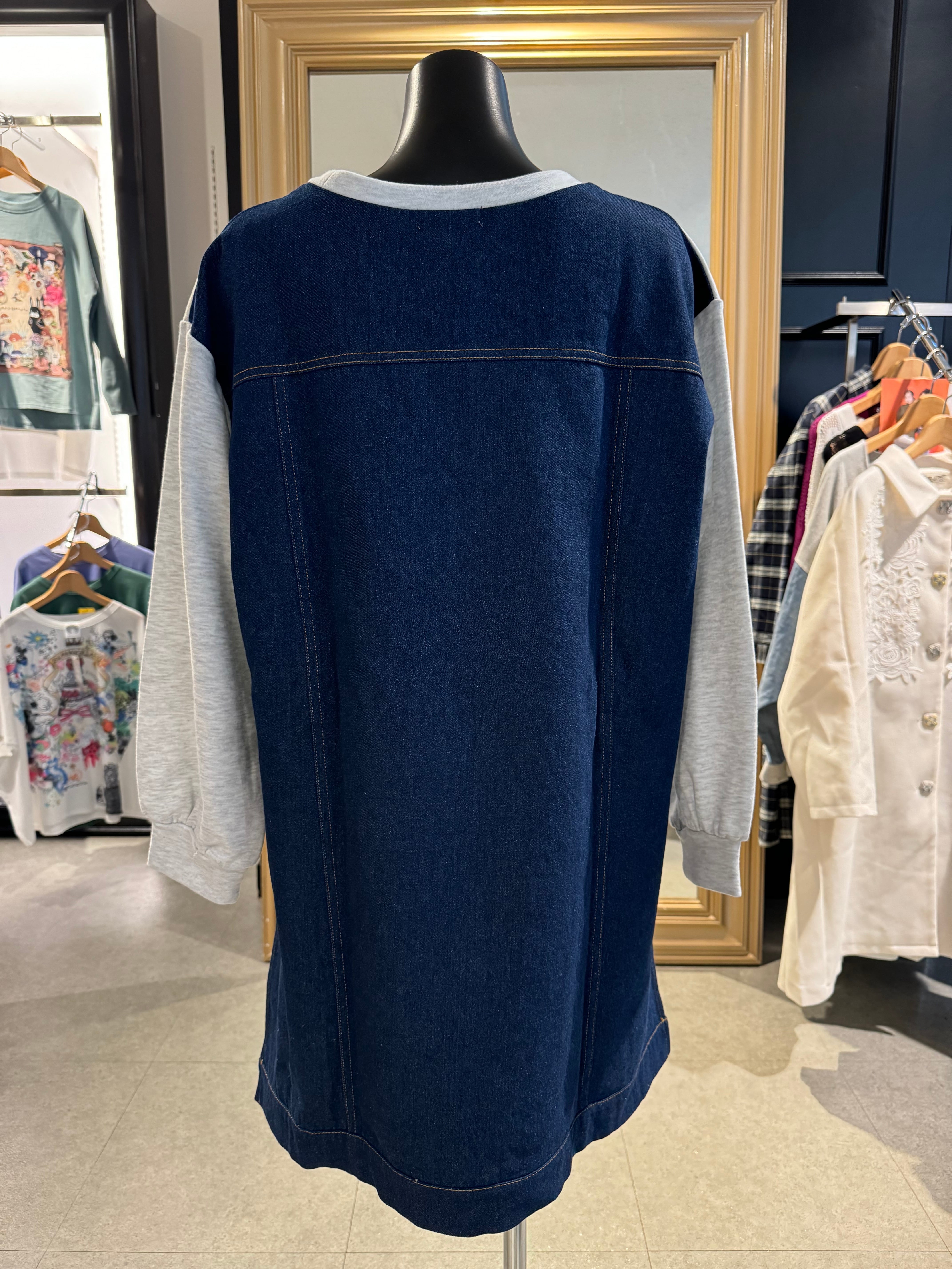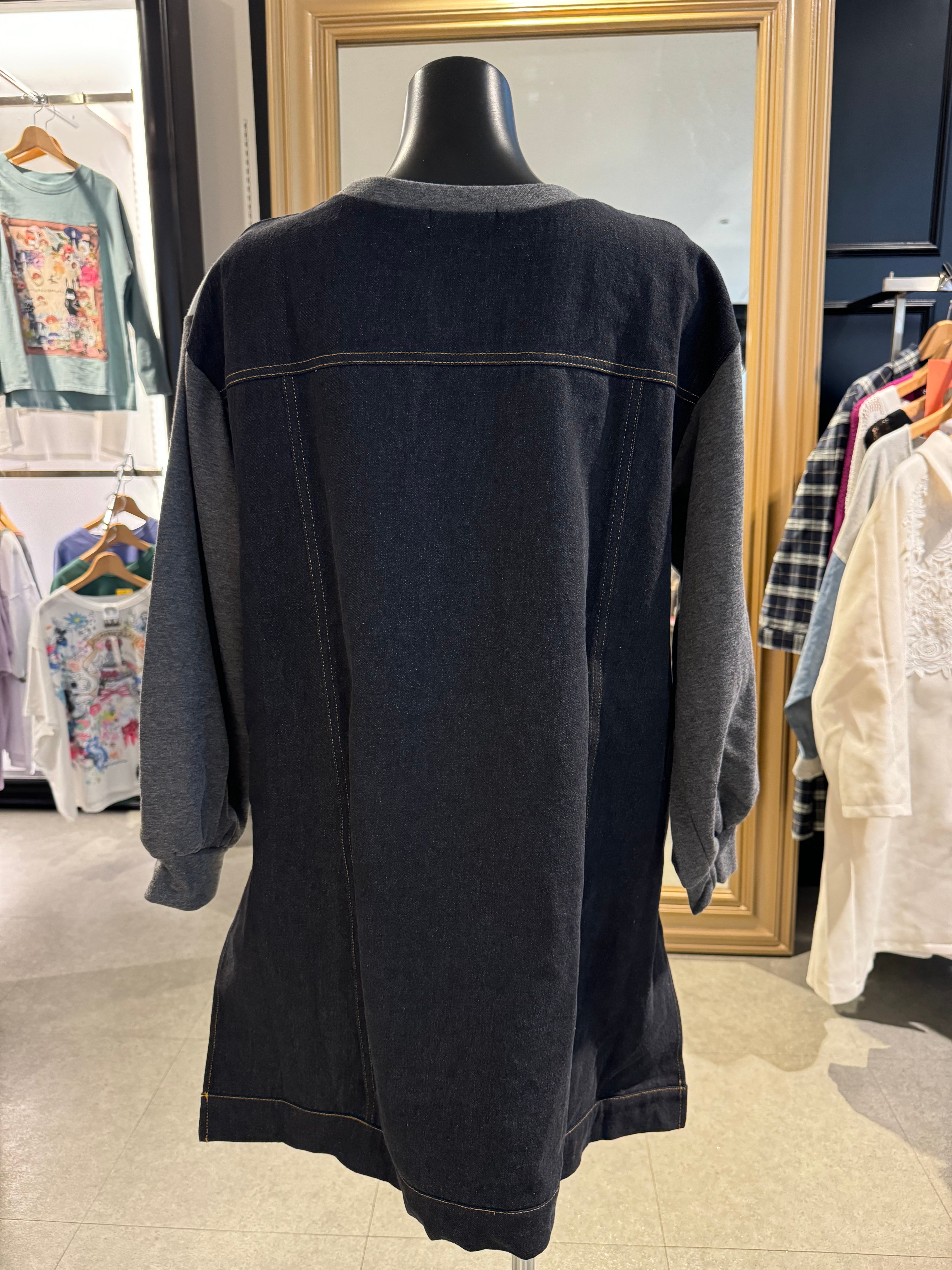 本体はポリエステル70%と綿30%で着心地も良く、デニム部分には綿75%、レーヨン10%、ポリエステル10%、ポリウレタン5%を使用。やわらかさと伸縮性を兼ね備えた素材感が、動きやすさを実現します。女性らしいラインを意識したチュニック丈は、どんなボトムスとも相性抜群です。
