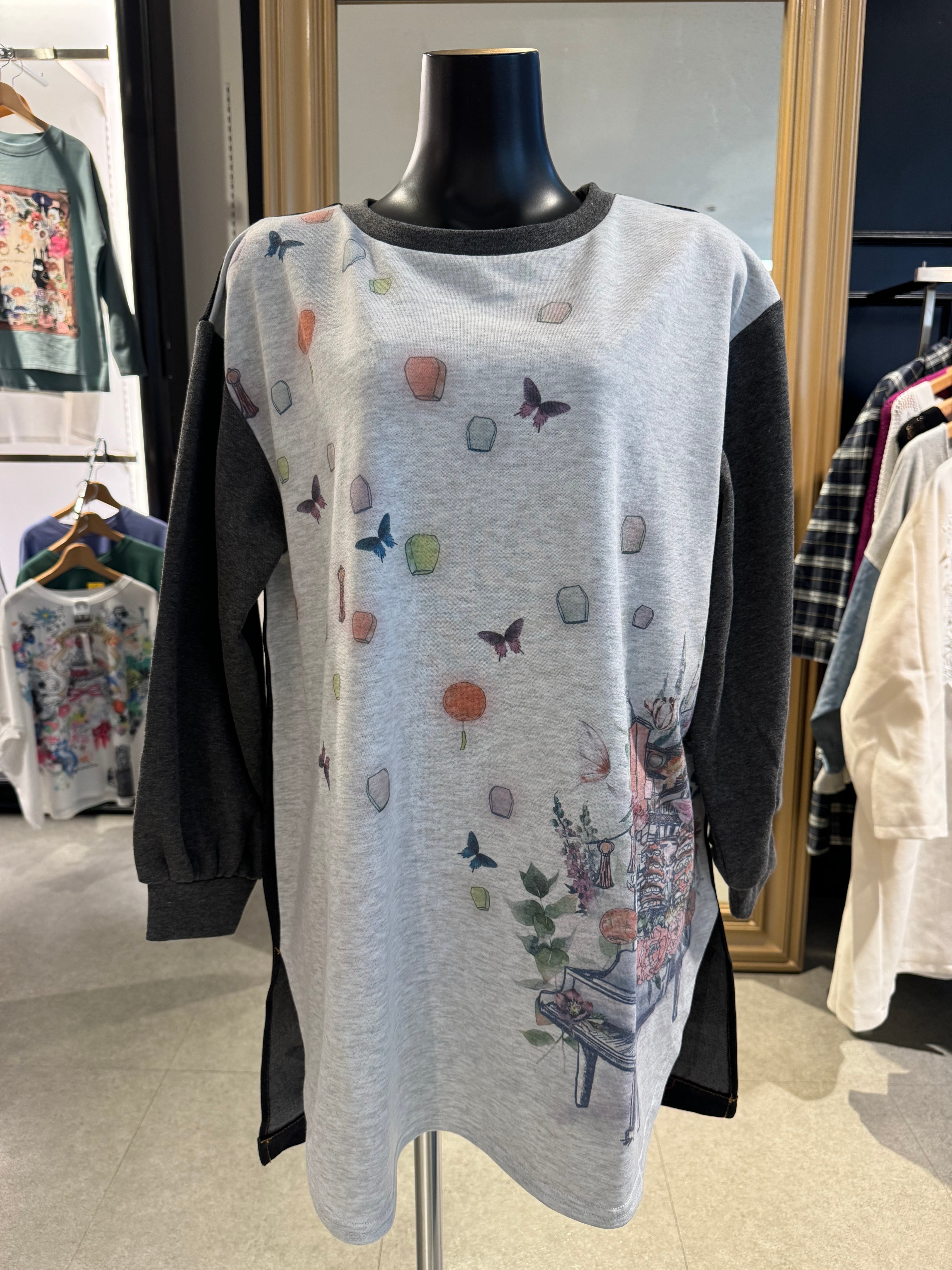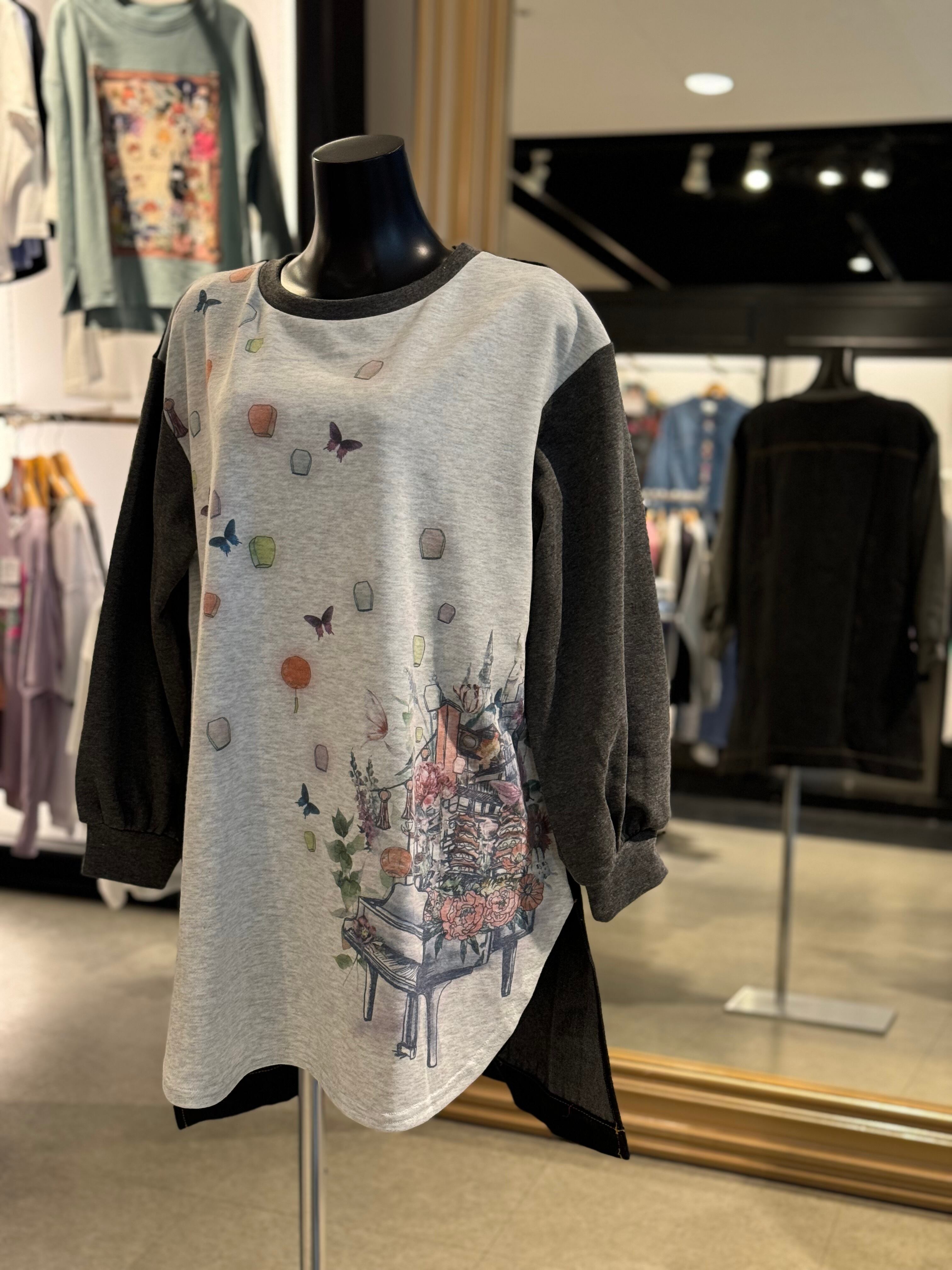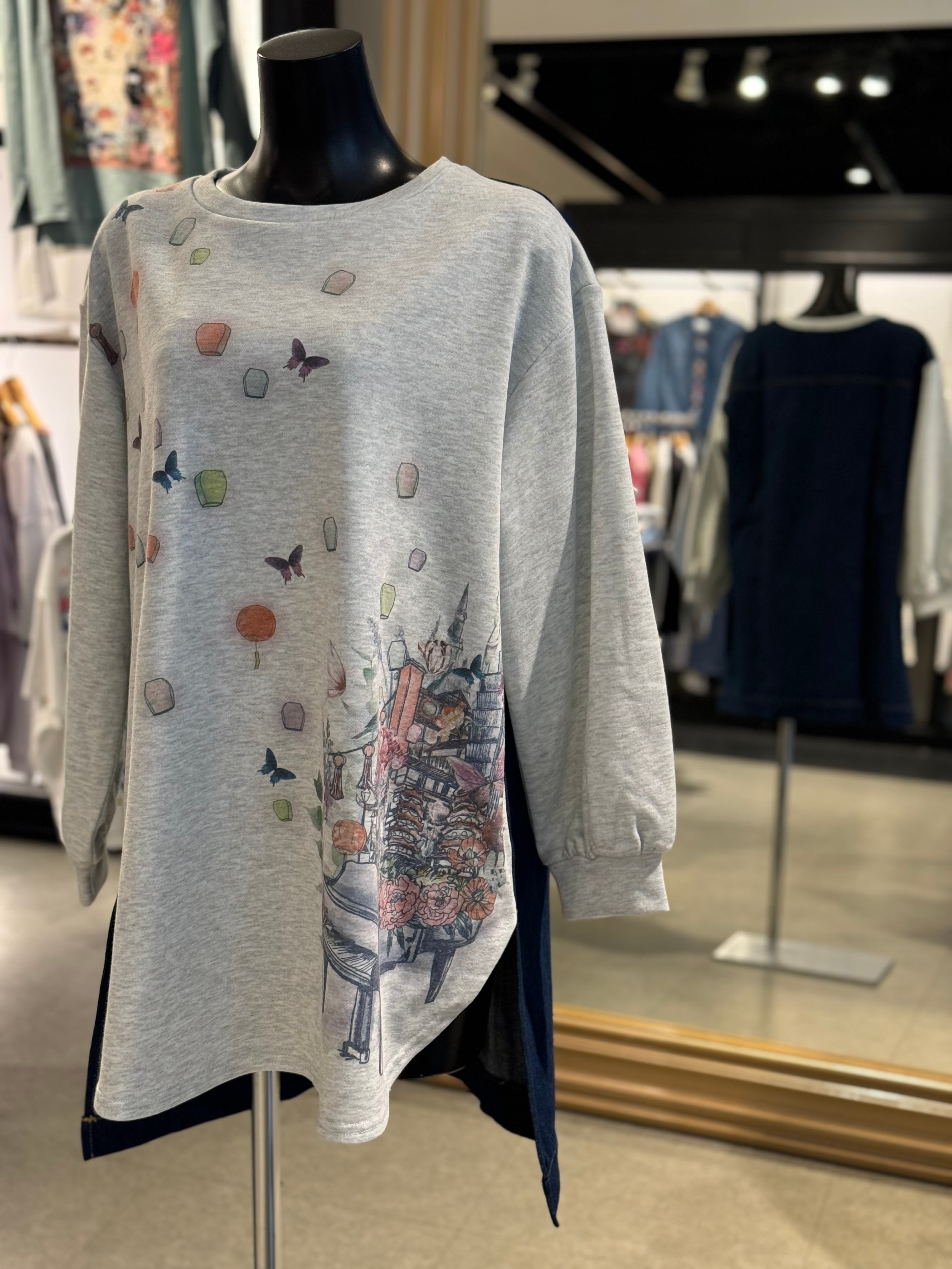 レディーストップス・プルオーバー・デニム・カジュアル・おしゃれ・ピアノ柄
