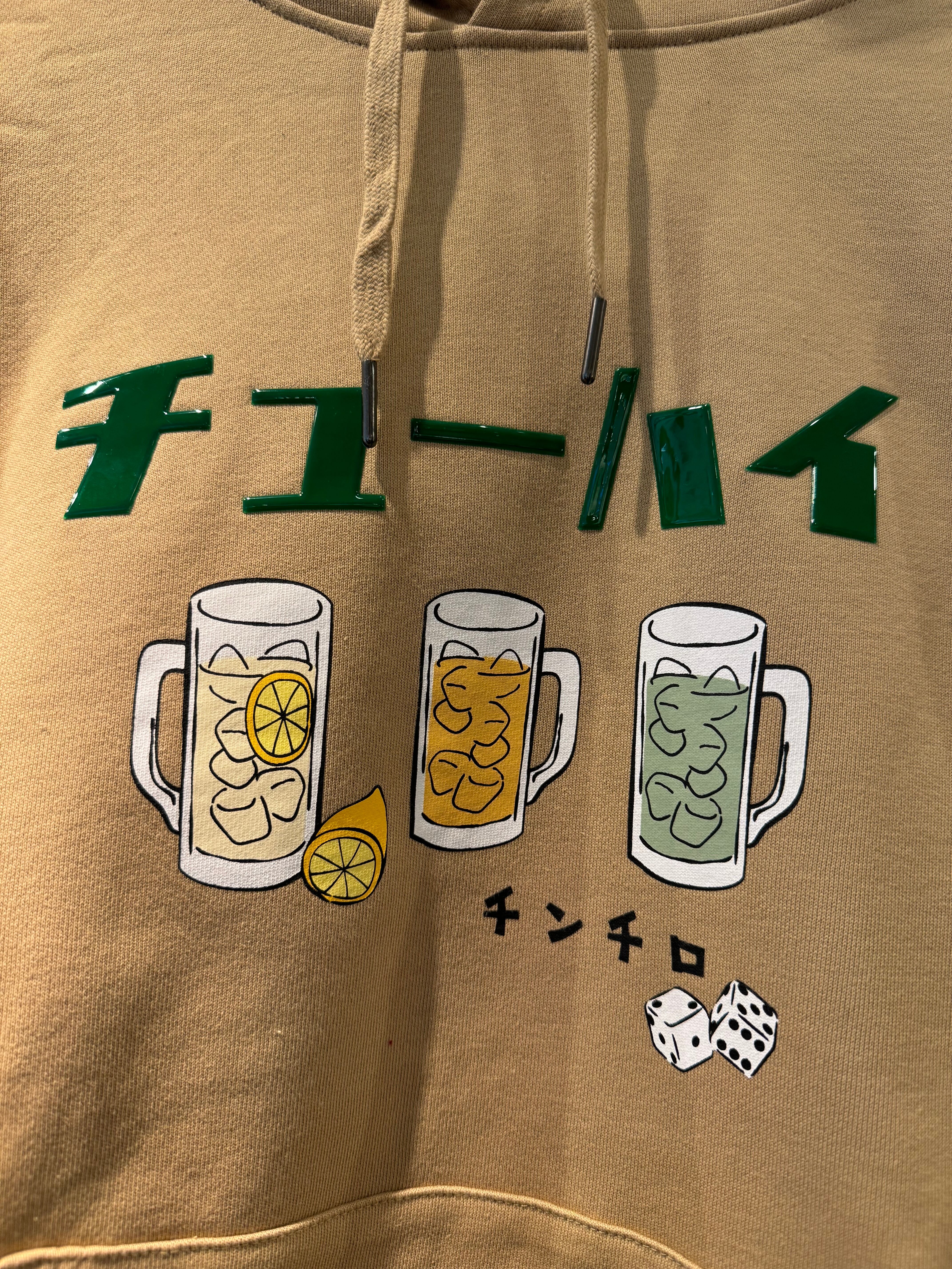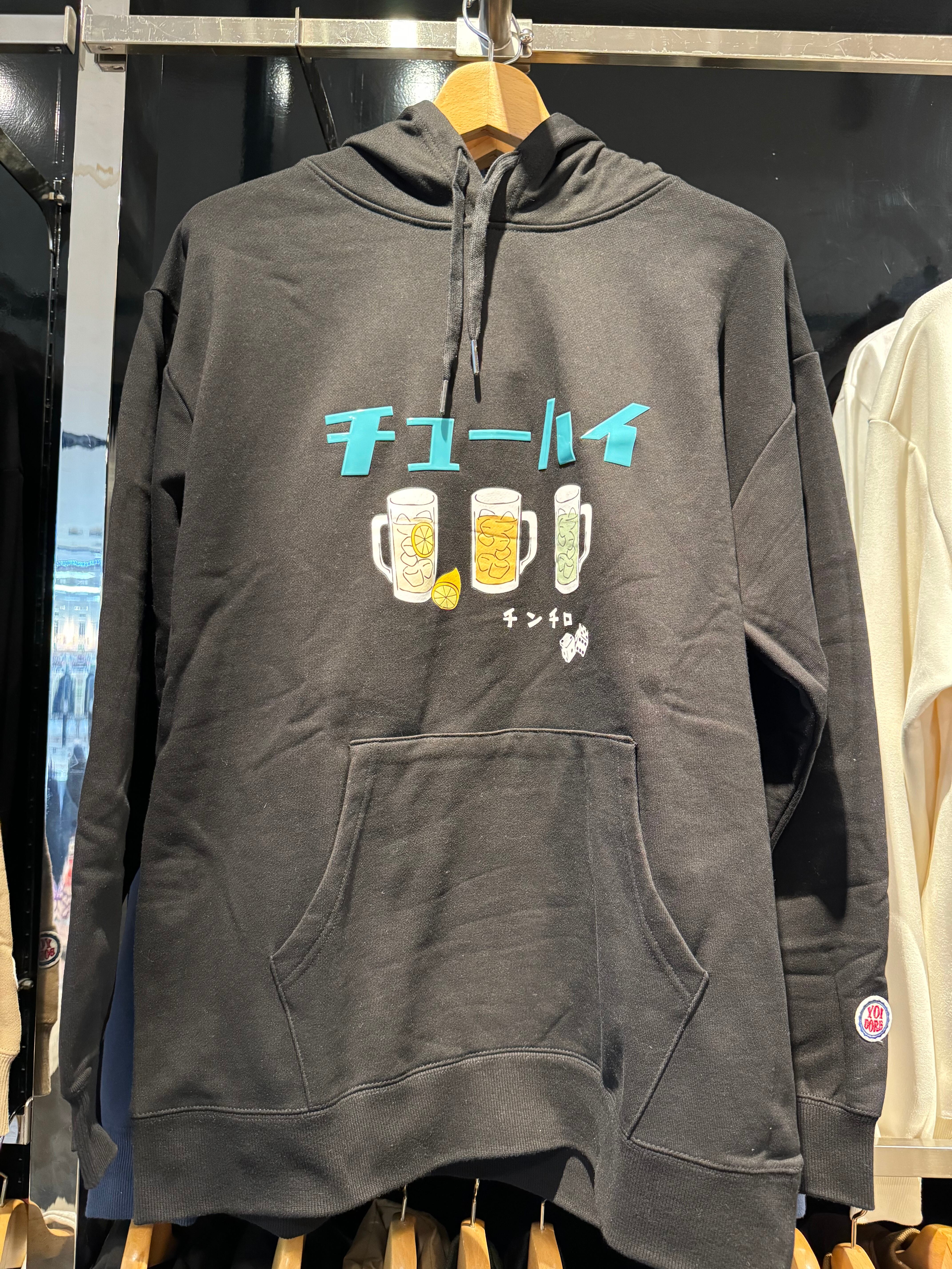 胸『チューハイ』や腰『YOIDORE』のPVCプリントが特徴的で、一味違うカジュアルスタイルを演出します。