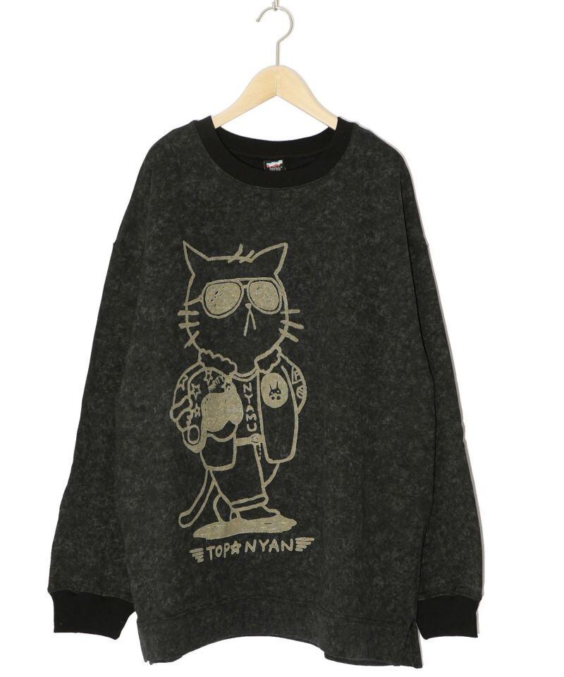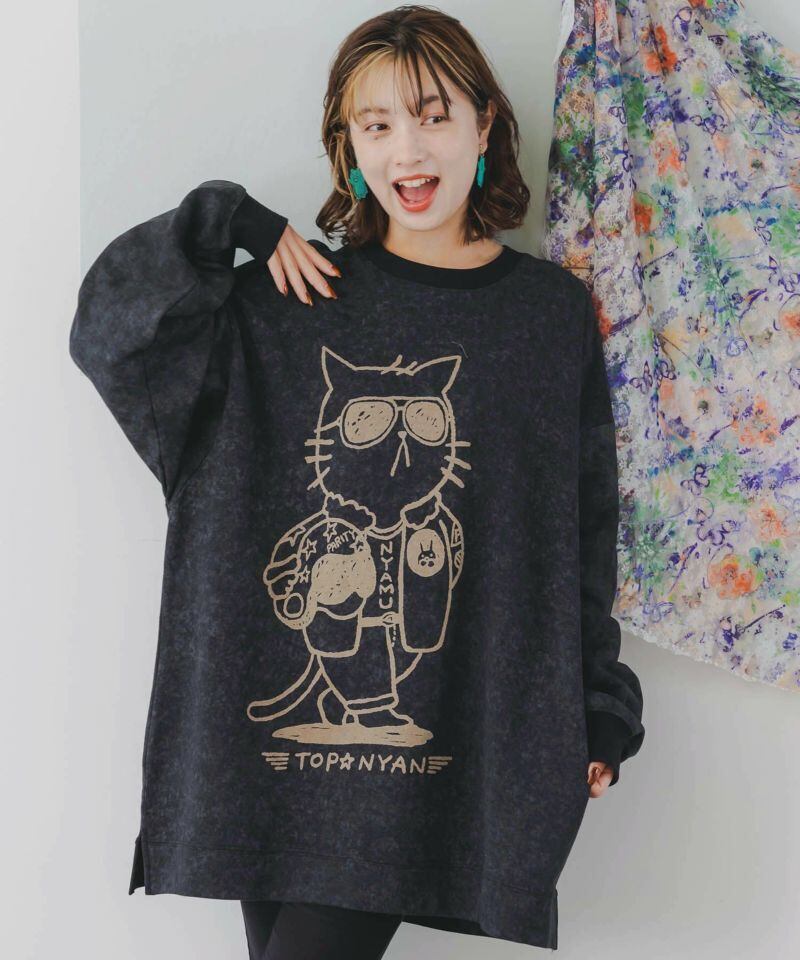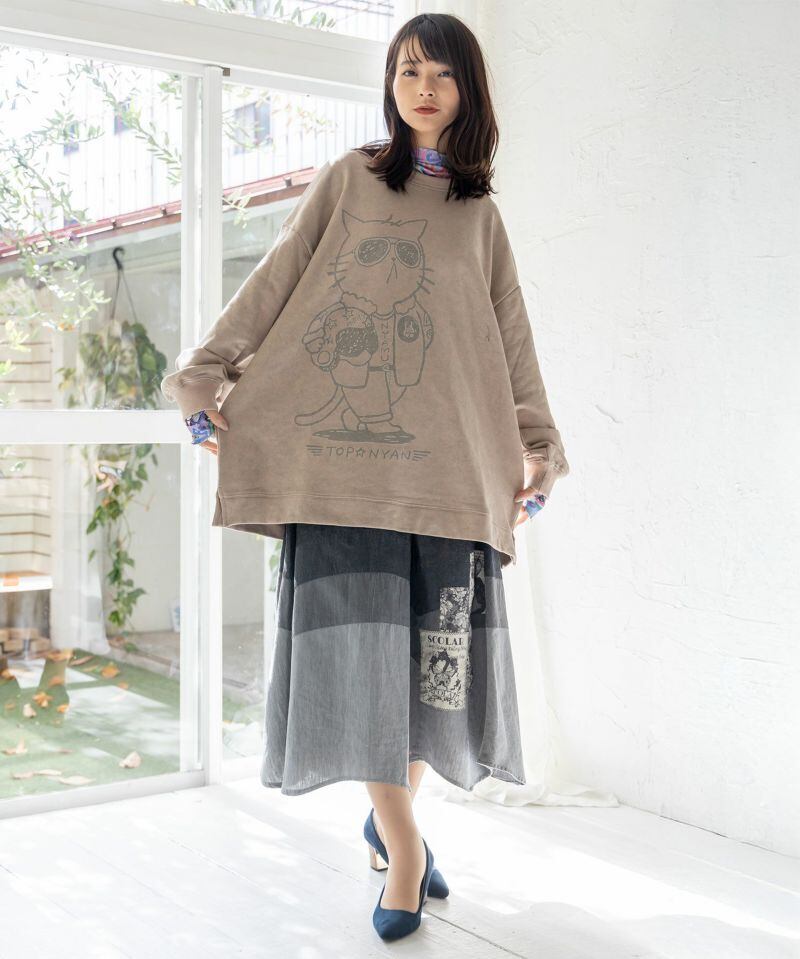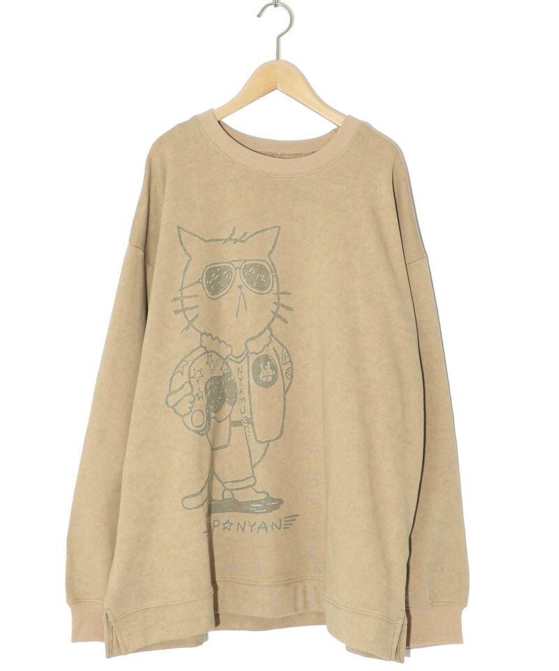 ScoLar Parity(スカラーパリティ)トップニャン柄裏毛BIGプルオーバー ブラック、ベージュ 343146