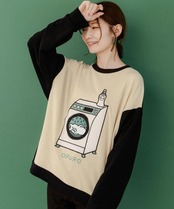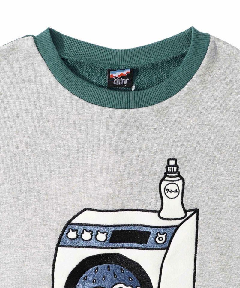 フロントに洗濯機で洗われているクマがフリース+刺繍アップリケで表現された、
