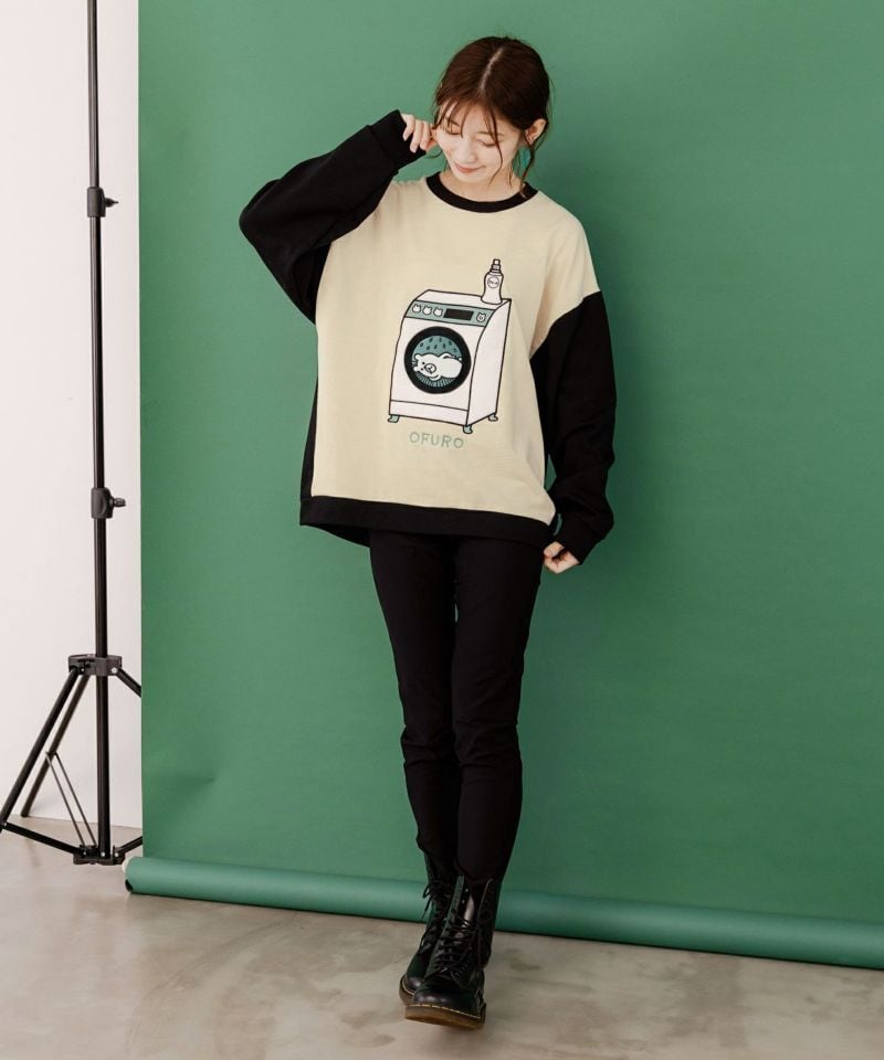 袖~背中が配色デザインになったユニセックスで着られるバイカラースウェットが登場!!