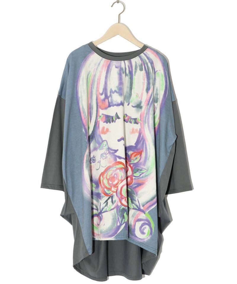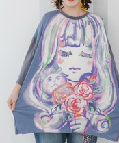 ScoLar(スカラー)手描き風女の子プリント柄チュニック オフホワイト、グレー 143669です。
