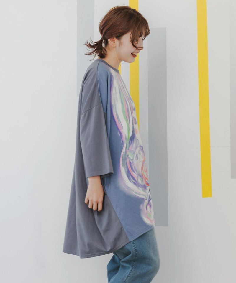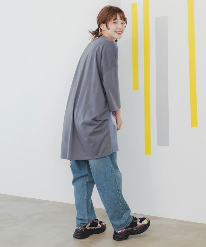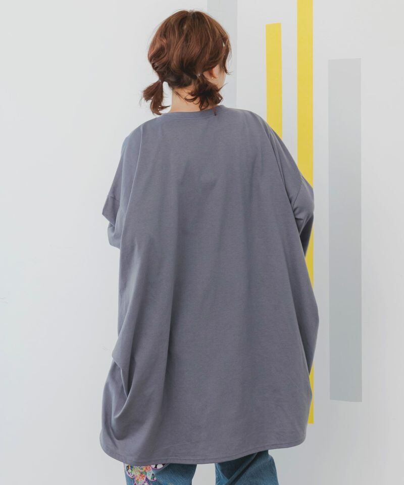 ゆったりと着られる身幅と、前身頃と袖~後ろ身頃が配色切り替えになっている