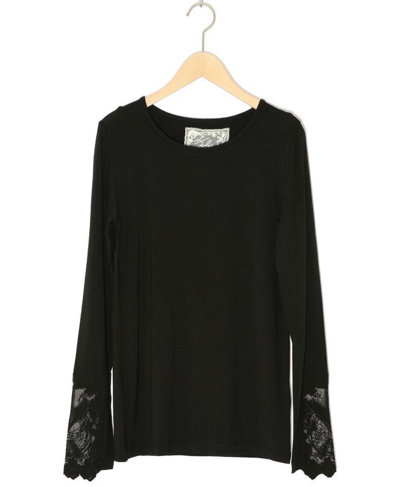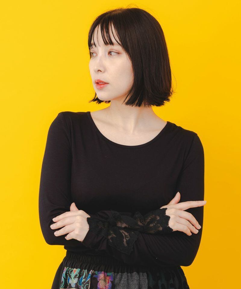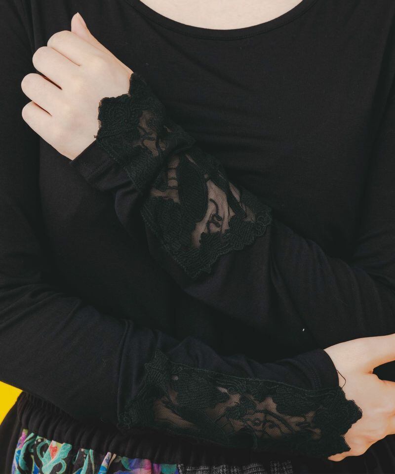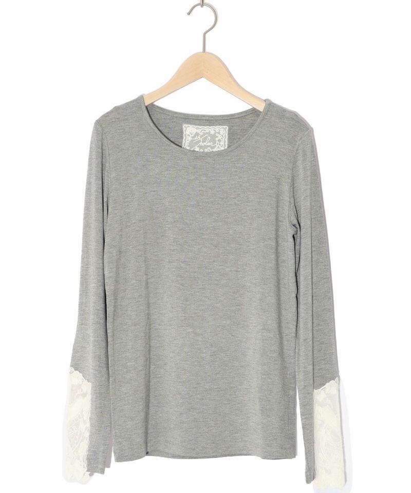 ISScoLar(イズスカラー)カトラリーとブドウの刺繍レース インナーロングスリーブTシャツ 杢グレー、ブラック 543221