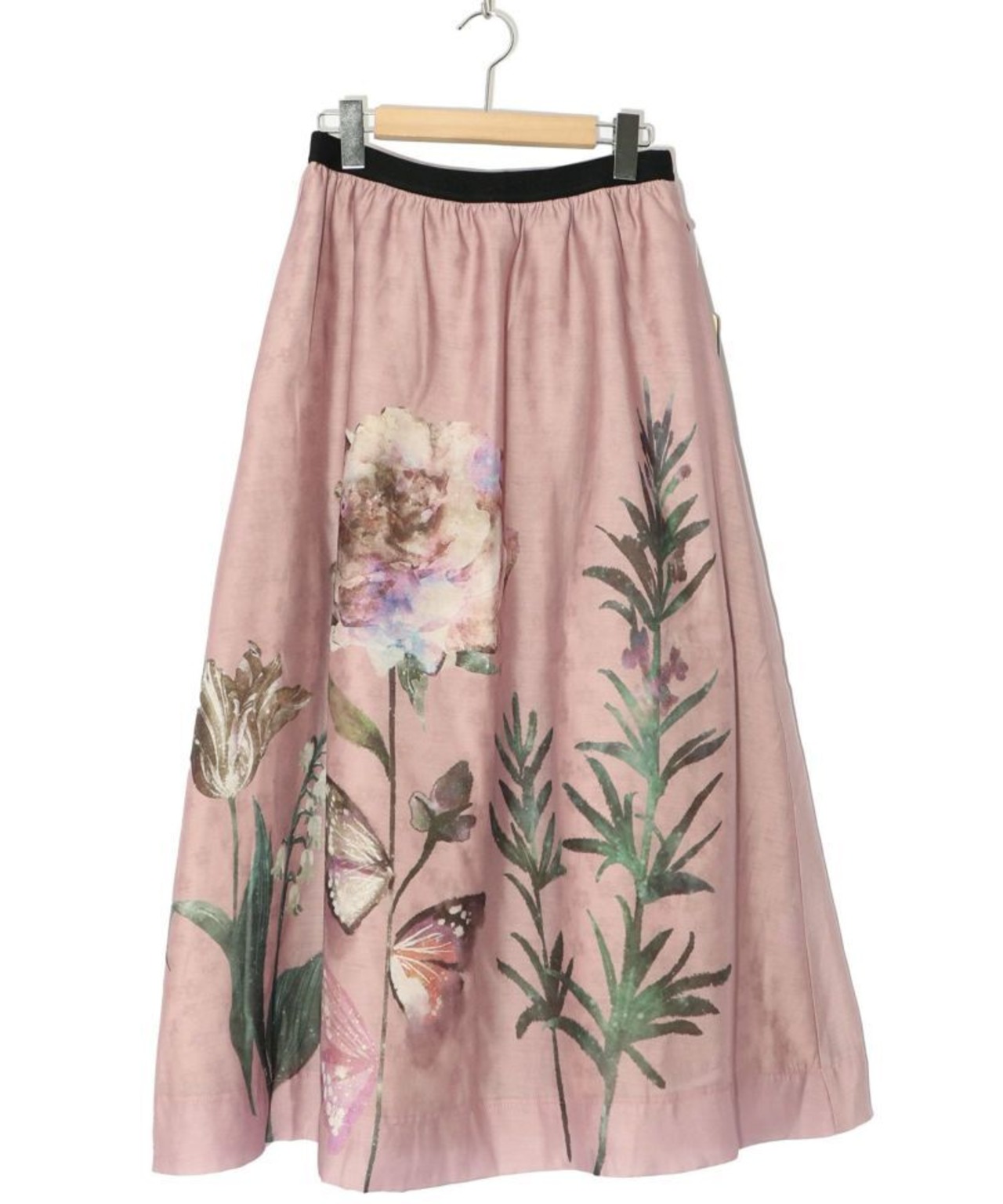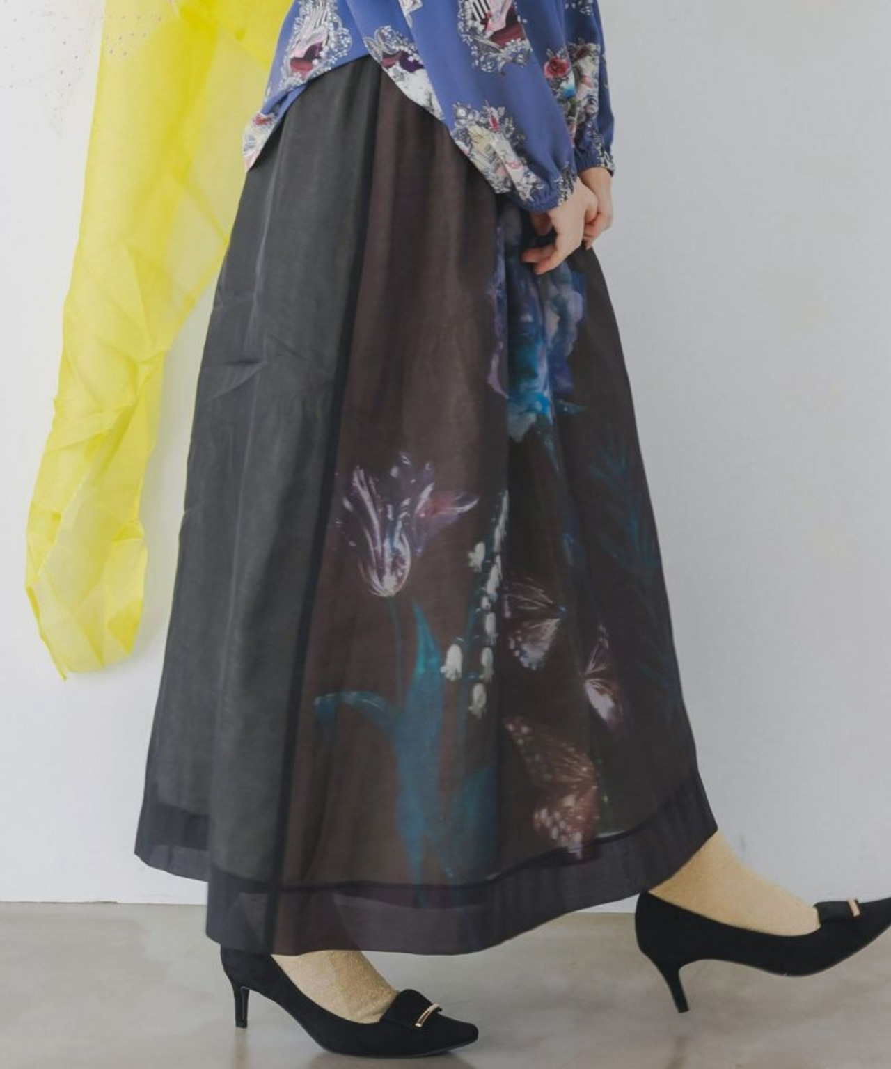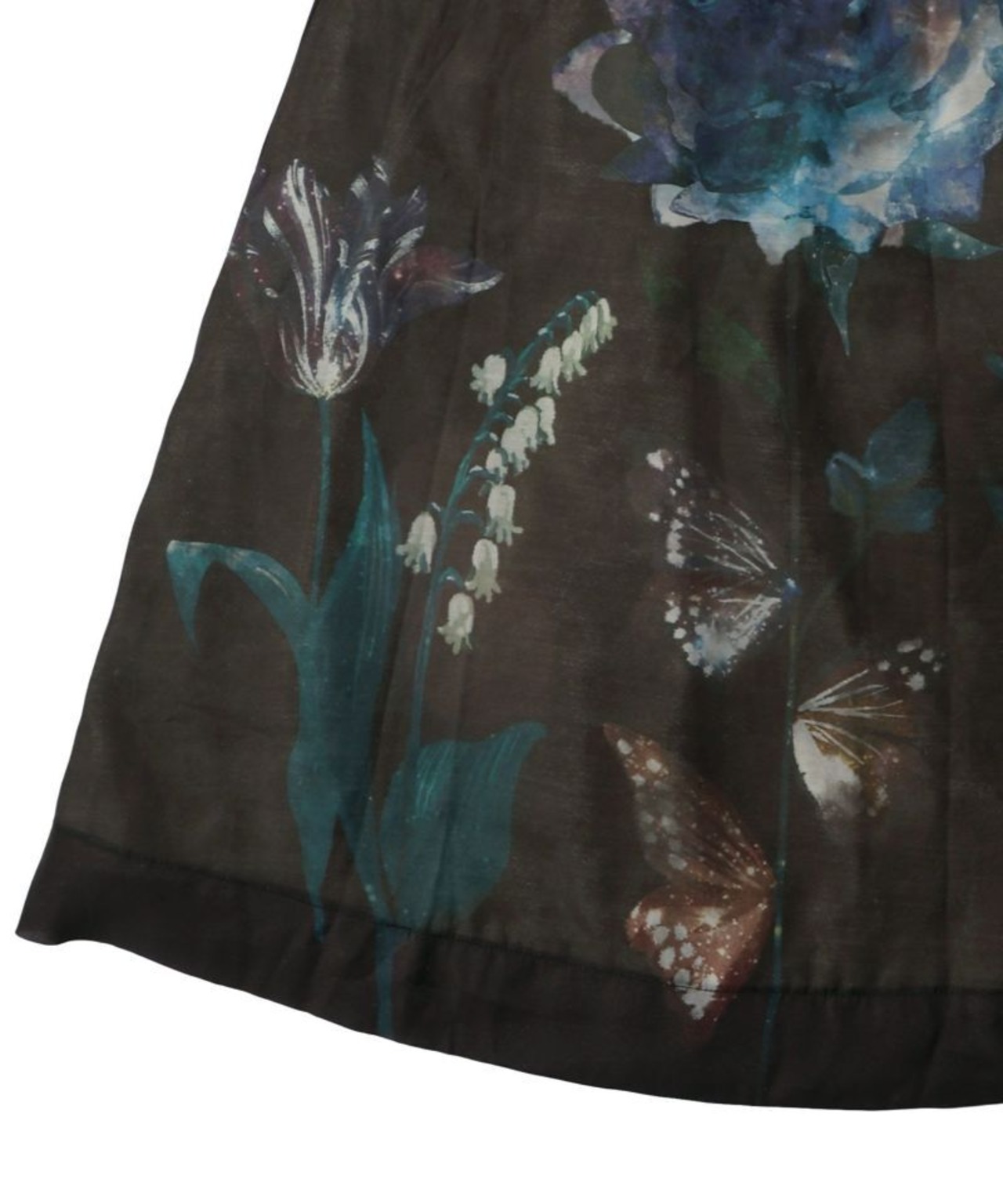 ISScoLar(イズスカラー)バラと蝶×花柄ふくれジャガード リバーシブルスカート グレー、ブラック、パープル 543279