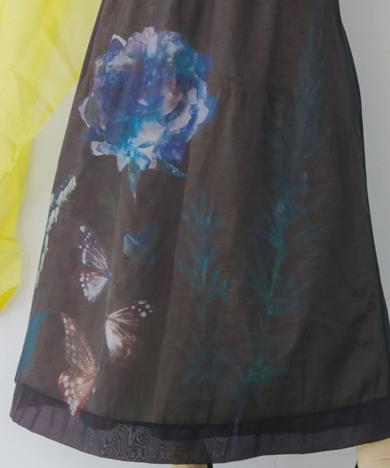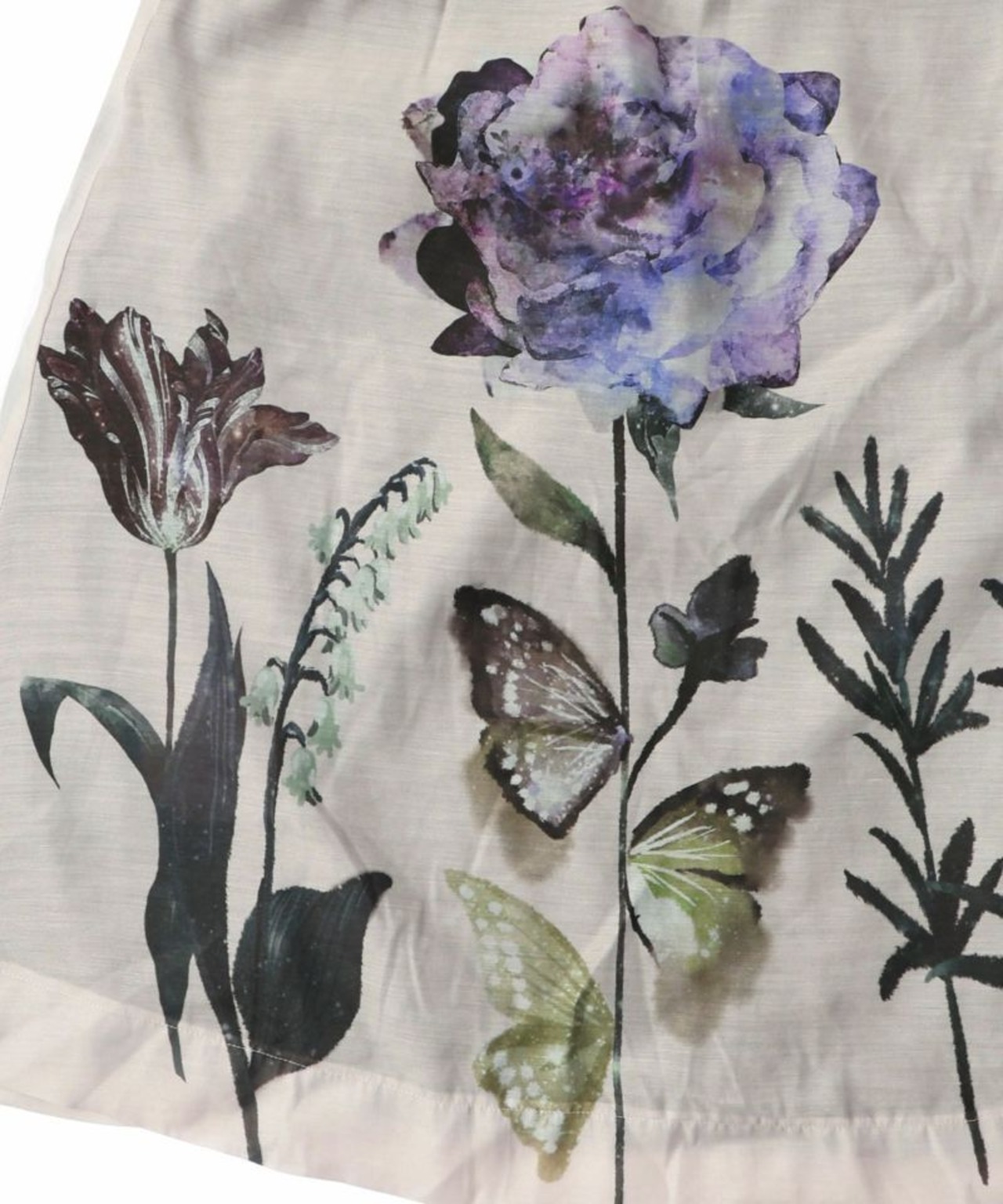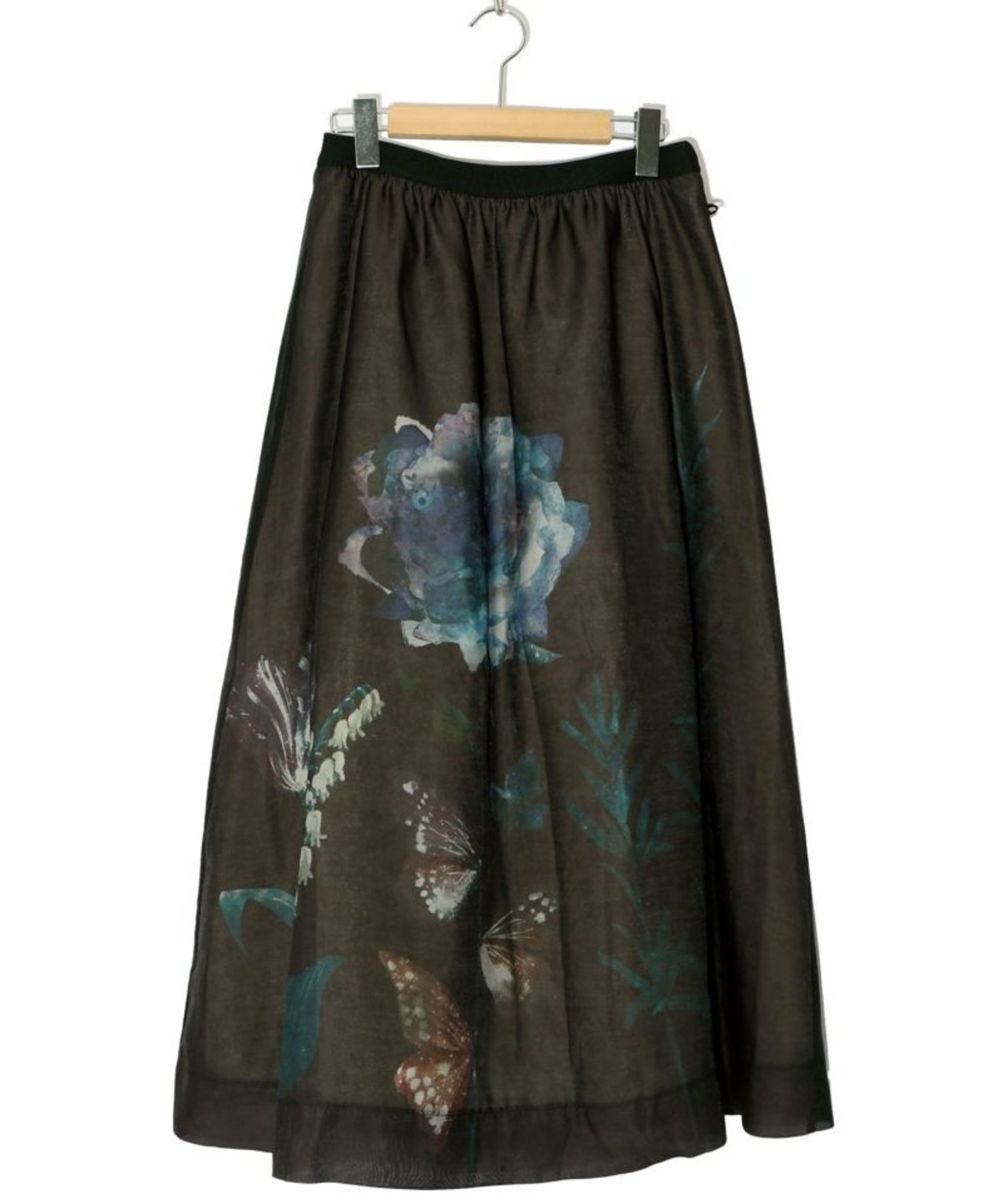 ISScoLar(イズスカラー)バラと蝶×花柄ふくれジャガード リバーシブルスカート グレー、ブラック、パープル 543279
