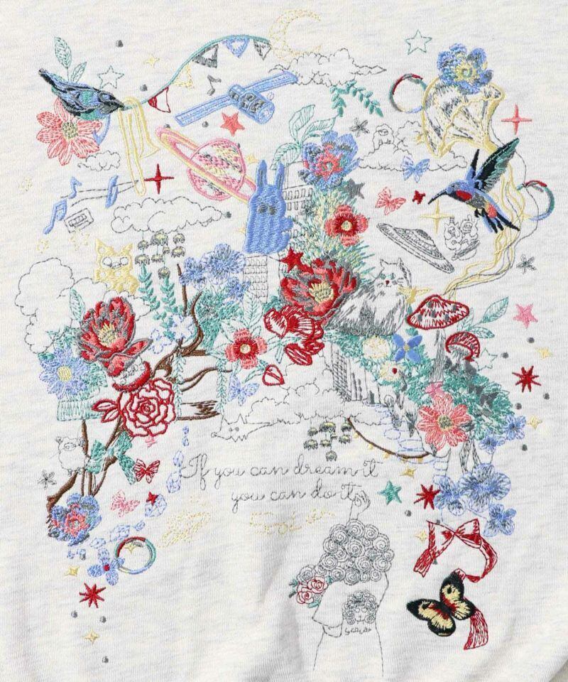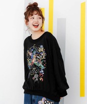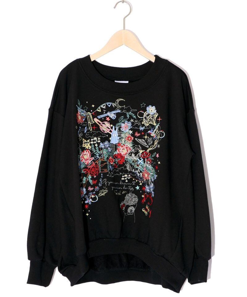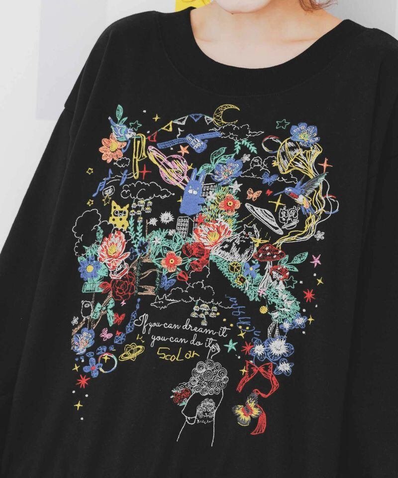 大きく刺繍で表現されたスカラーちゃんやモチーフたちが華やかなプルオーバーが登場!