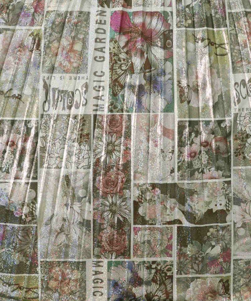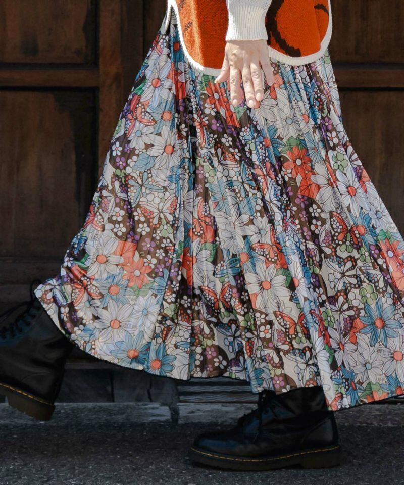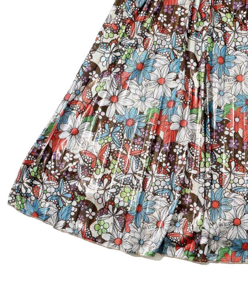 ScoLar(スカラー)POP柄・レトロ柄・花コラージュ柄 3柄展開ホログラムプリーツスカート アイボリー、ブラック、ベージュ 143681