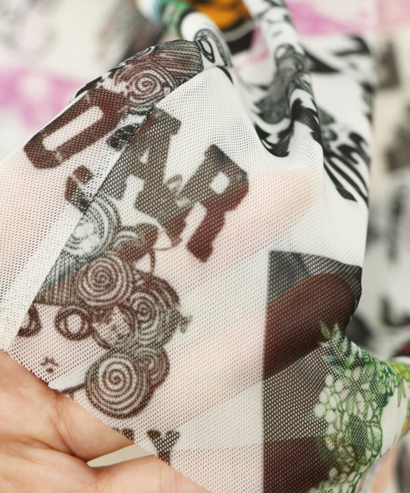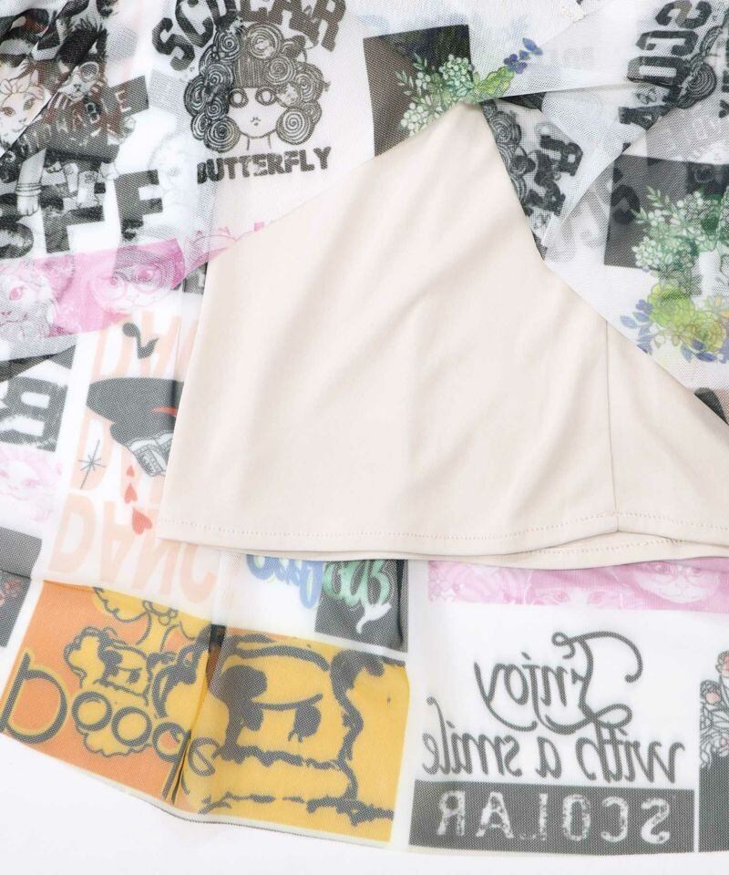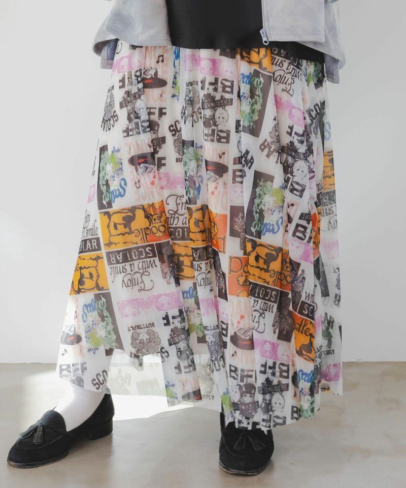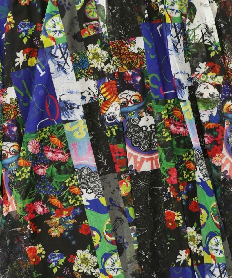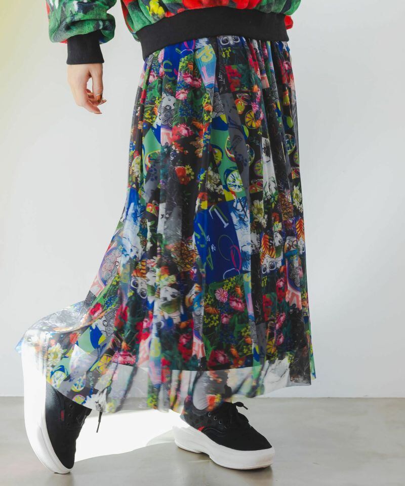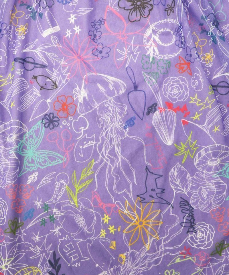 ScoLar(スカラー)パッチワーク・アニマル花・手描きクラゲ 3柄展開チュールスカート オフホワイト、ブラック、パープル 143749です。