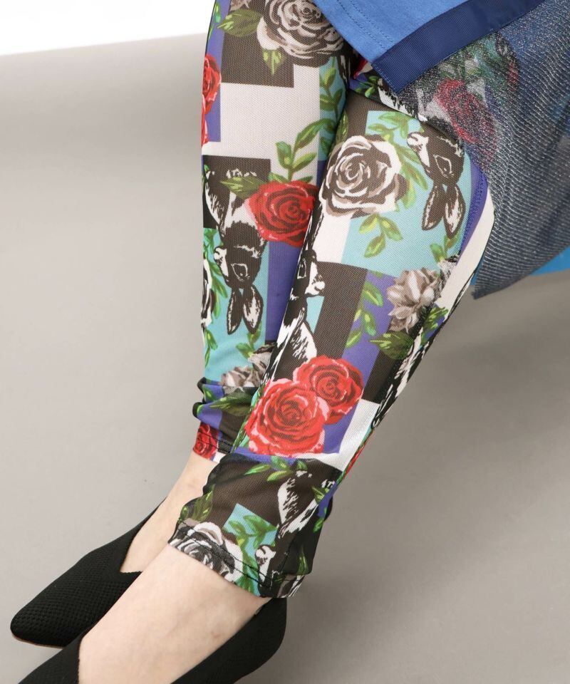 ScoLar(スカラー)蝶花ネコとウサギ 3柄展開チュールレギンス オフホワイト、ブラック、グリーン 151609です。