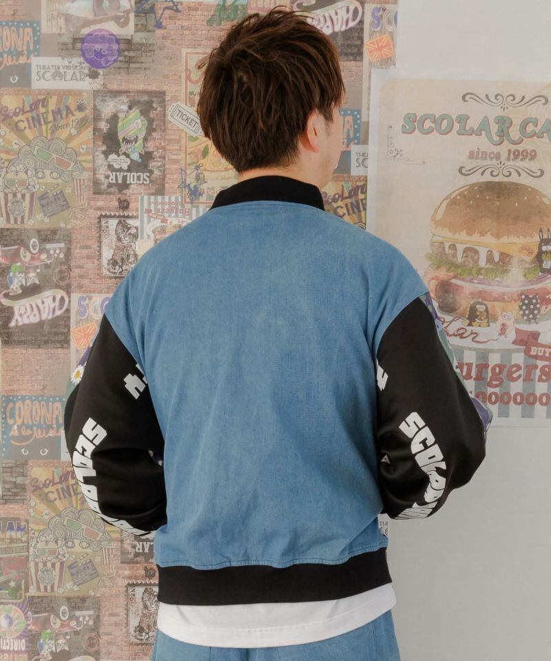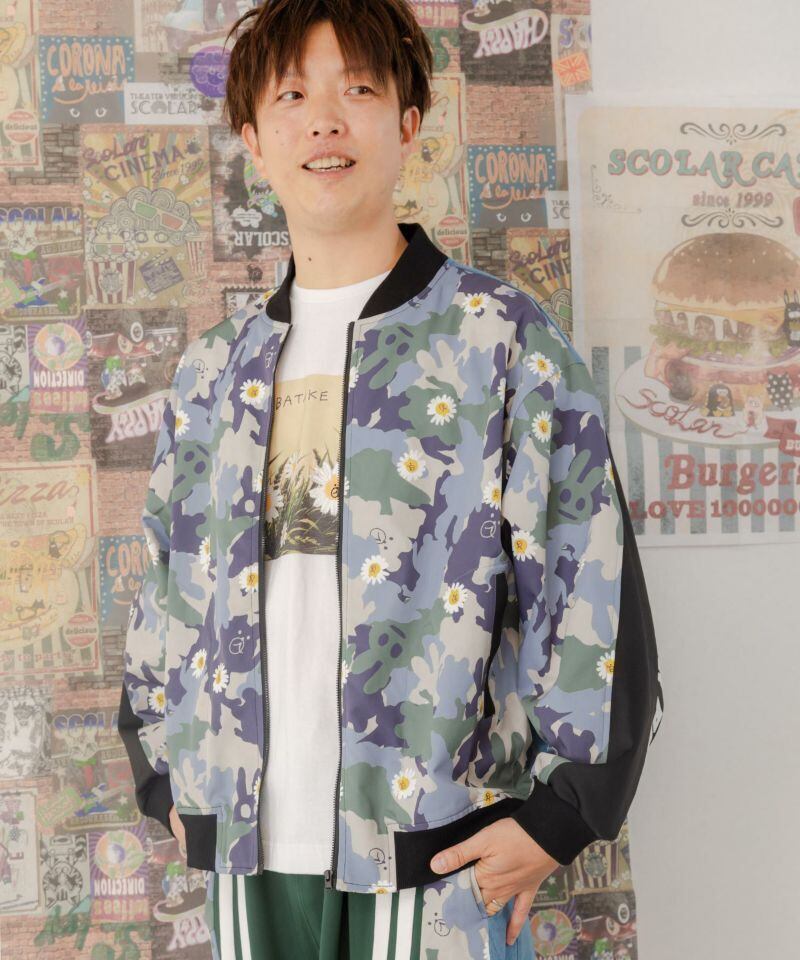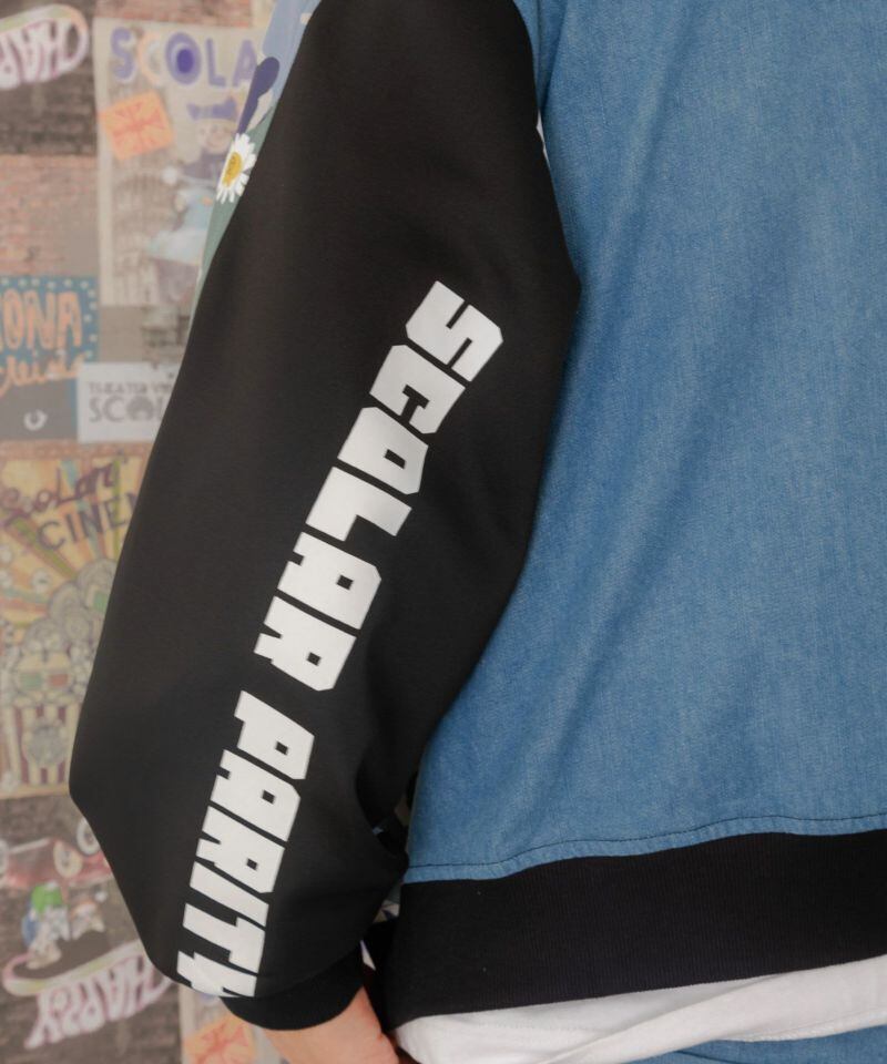 ScoLar Parity(スカラーパリティ)クマとウサギのカモフラージュ柄 ジャージ×デニムブルゾン オレンジ、グリーン 351103 です。