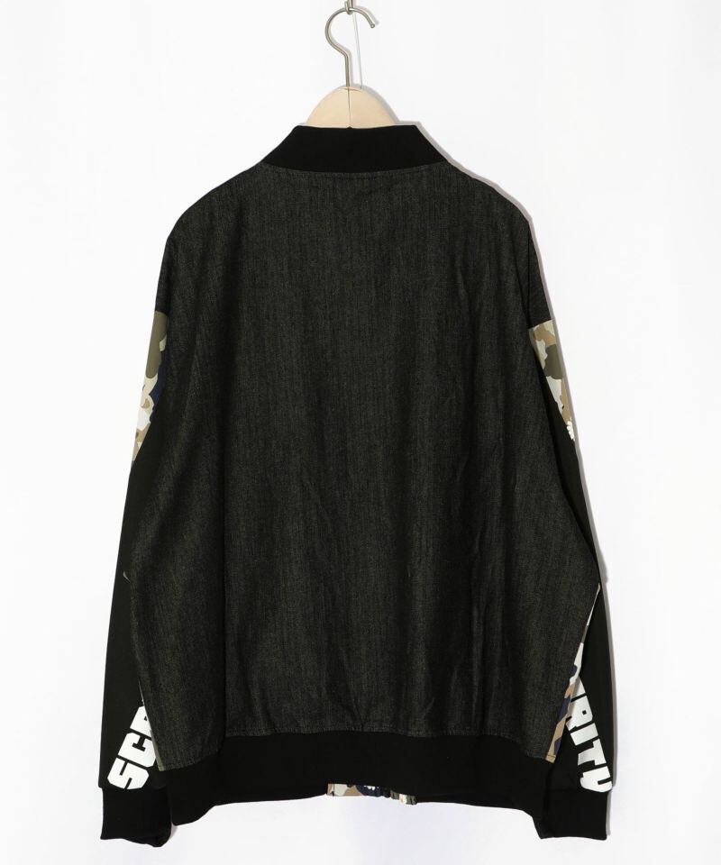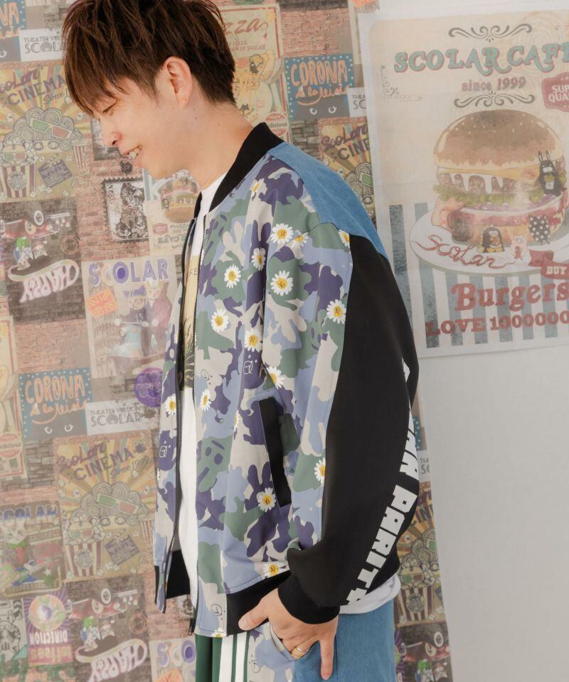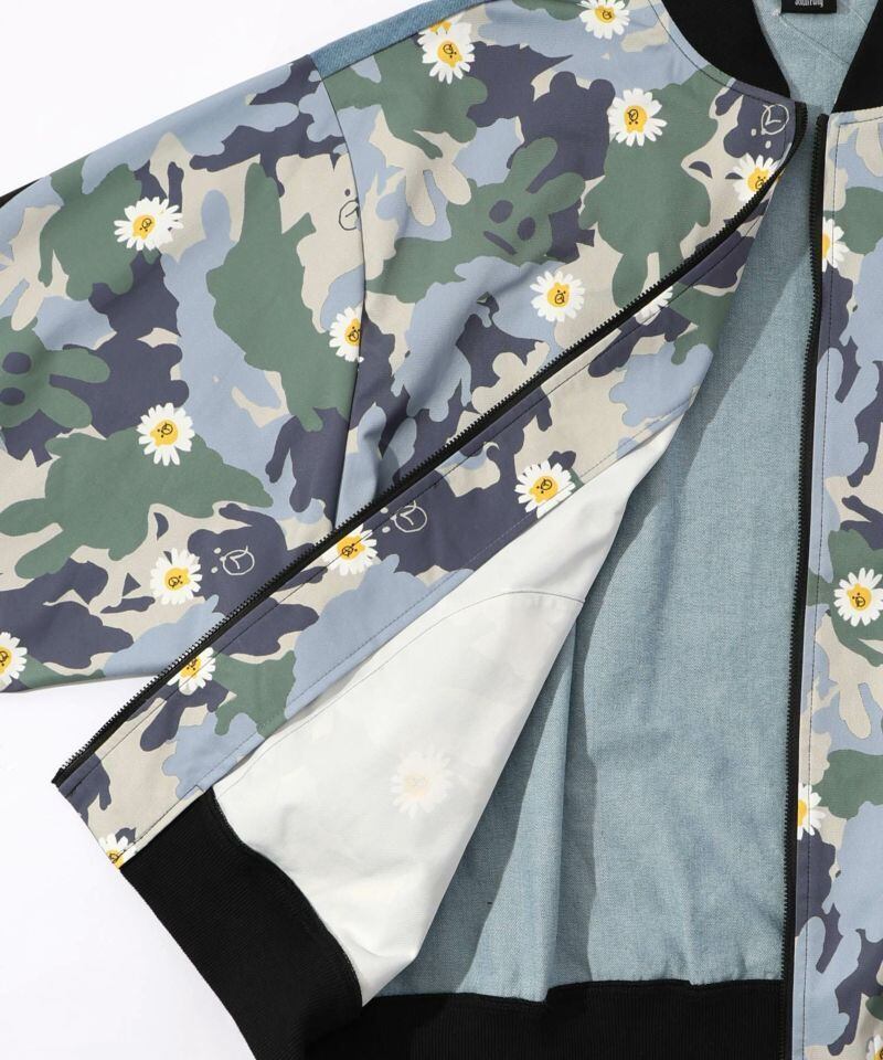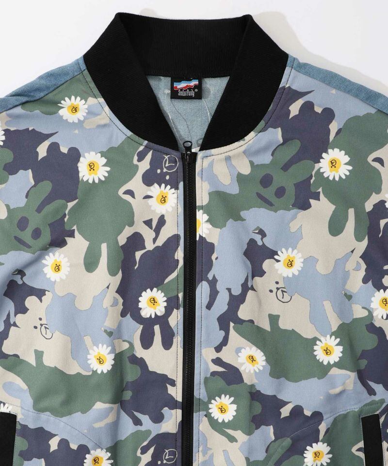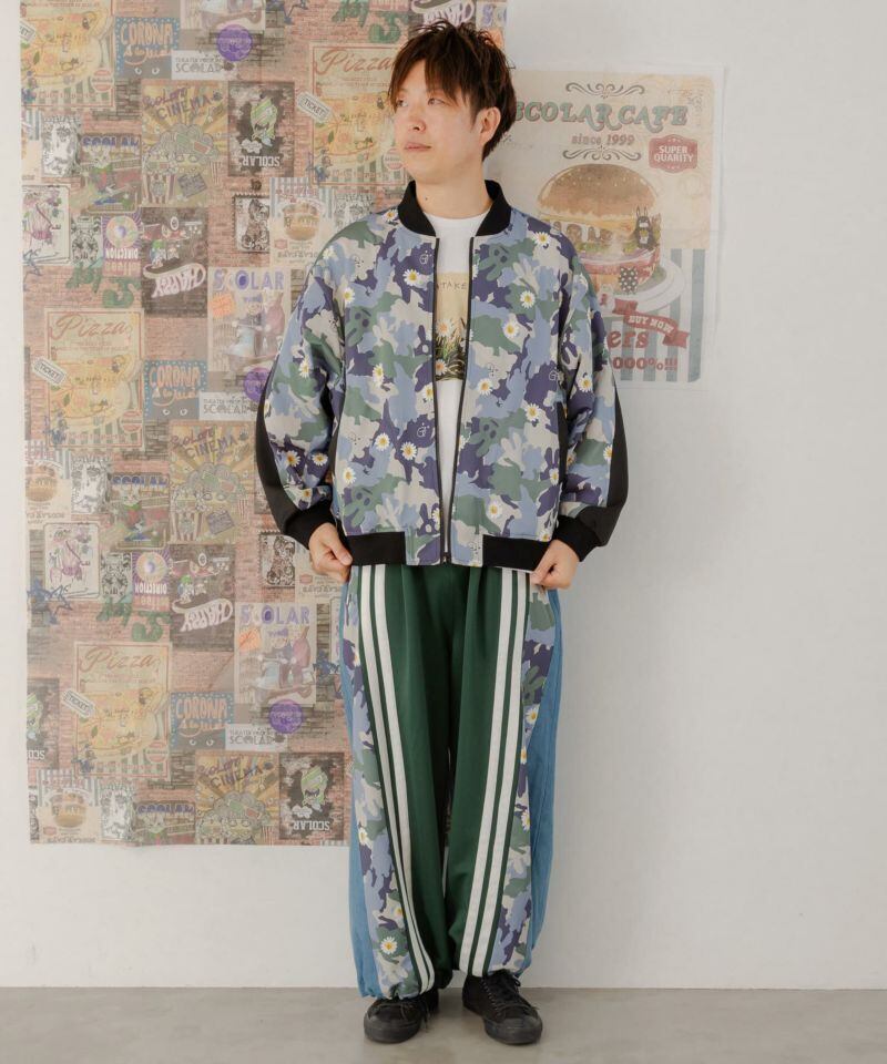 ScoLar Parity(スカラーパリティ)クマとウサギのカモフラージュ柄 ジャージ×デニムブルゾン オレンジ、グリーン 351103
