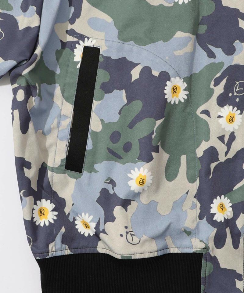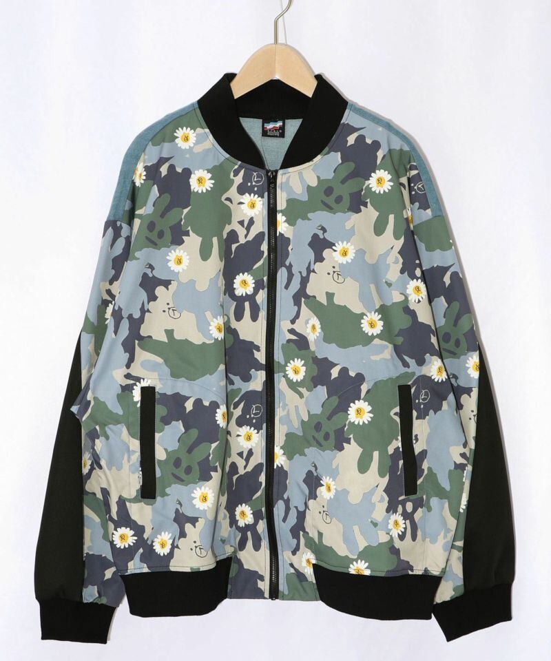 パリティのオリジナルカモフラージュ柄にクマの花が散りばめられた、