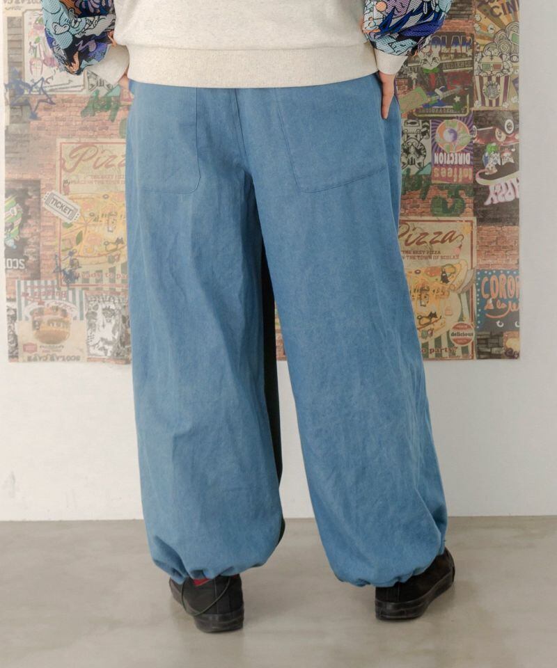 ウエストは総ゴム仕様で快適な履き心地。ジャージ素材とデニム生地の切り替えが新鮮で、