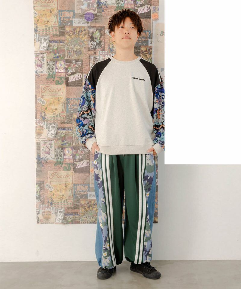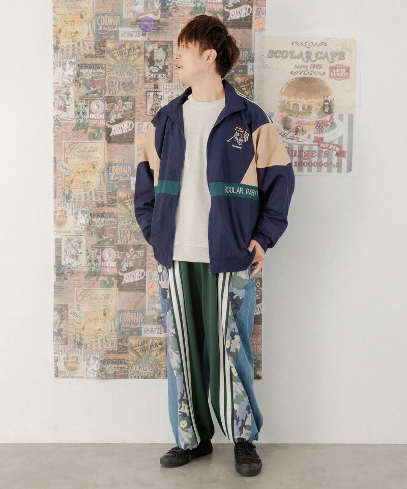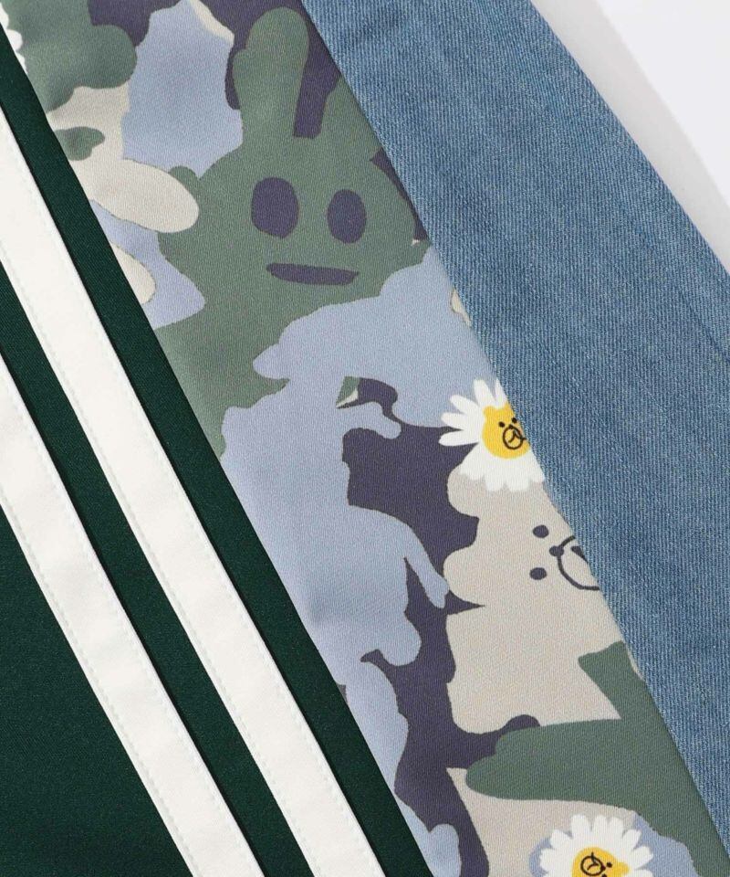 ScoLar Parity(スカラーパリティ)クマとウサギのカモフラージュ柄 ジャージ×デニムパンツ ブラック、グリーン 351104です。