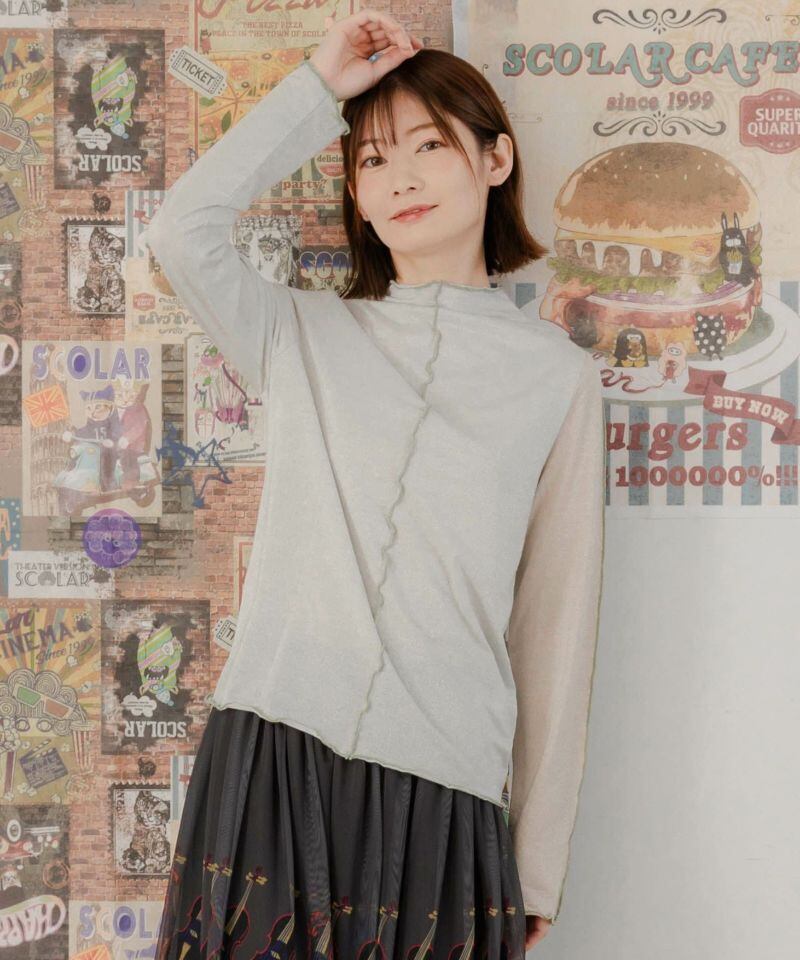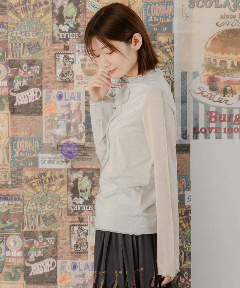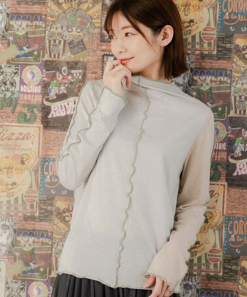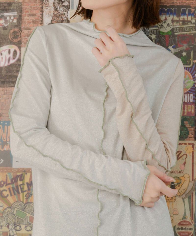 ほんのりシアー感のあるラメ入り素材を使用した薄手のロングスリーブTシャツ。
