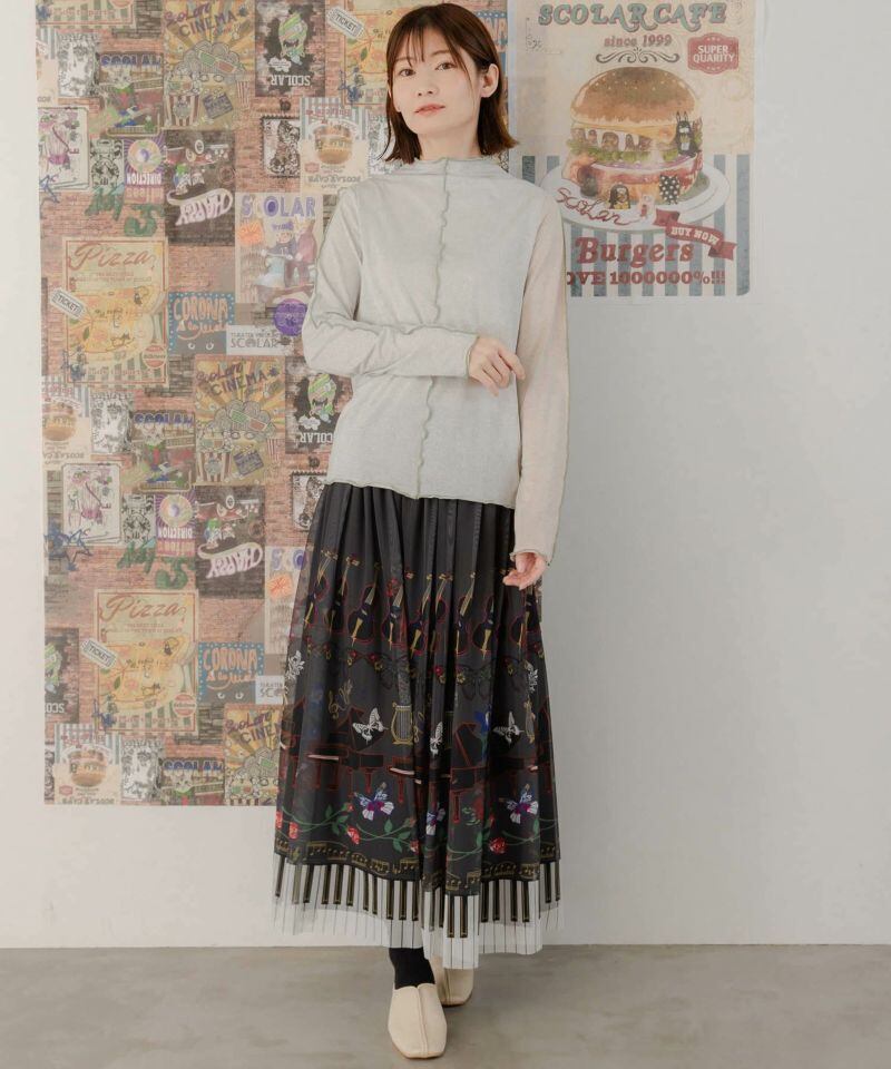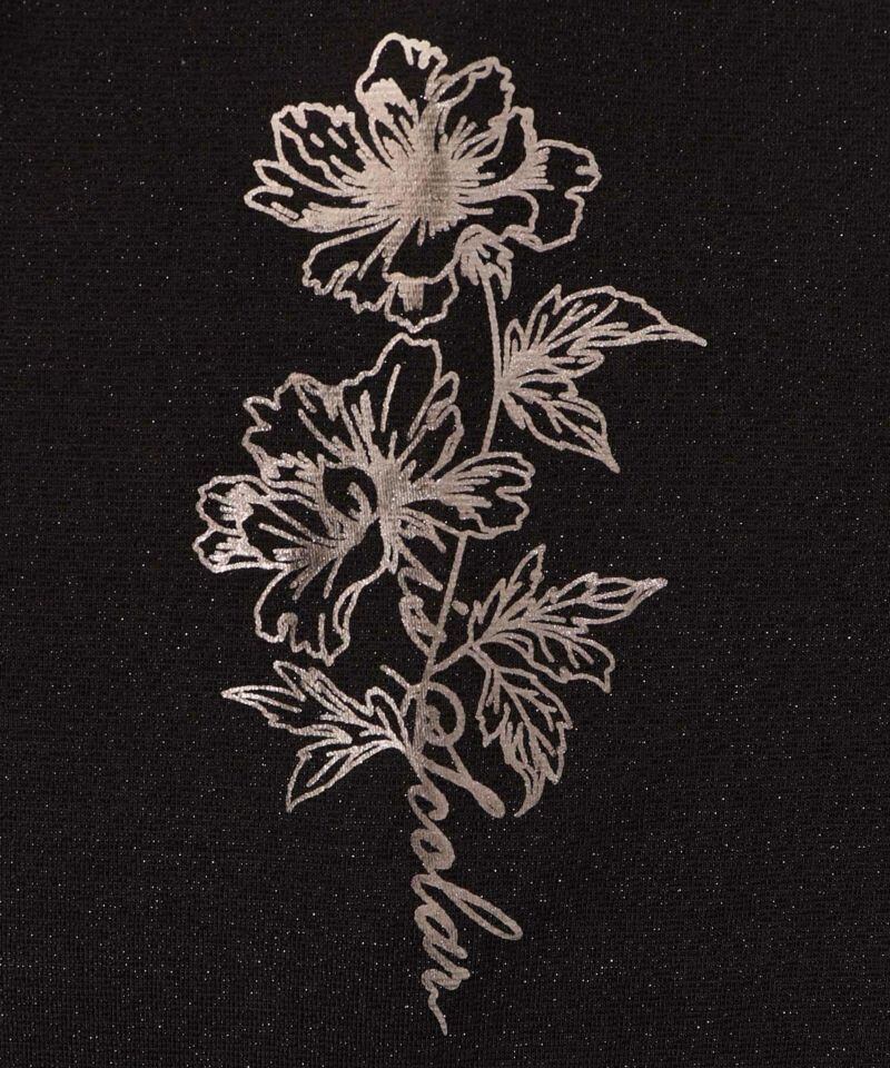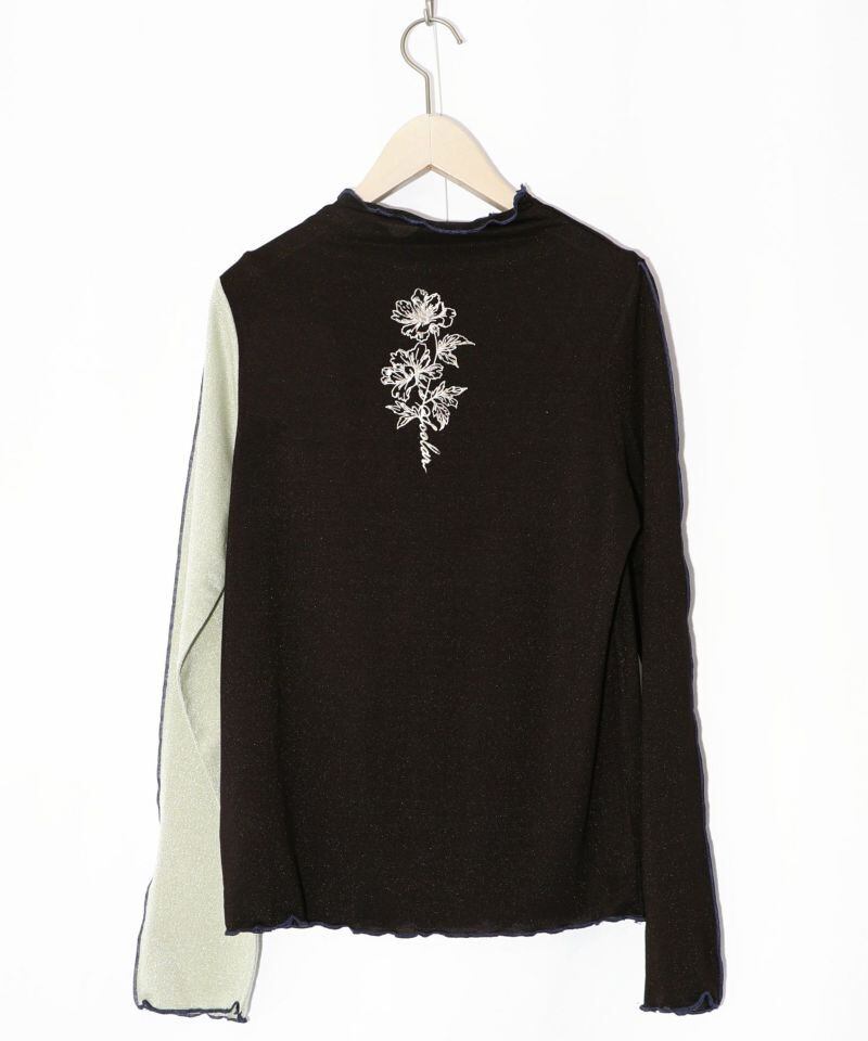 ISScoLar(イズスカラー)花柄ラメ入りバイカラーロングスリーブTシャツ オフホワイト、ブラック 551213